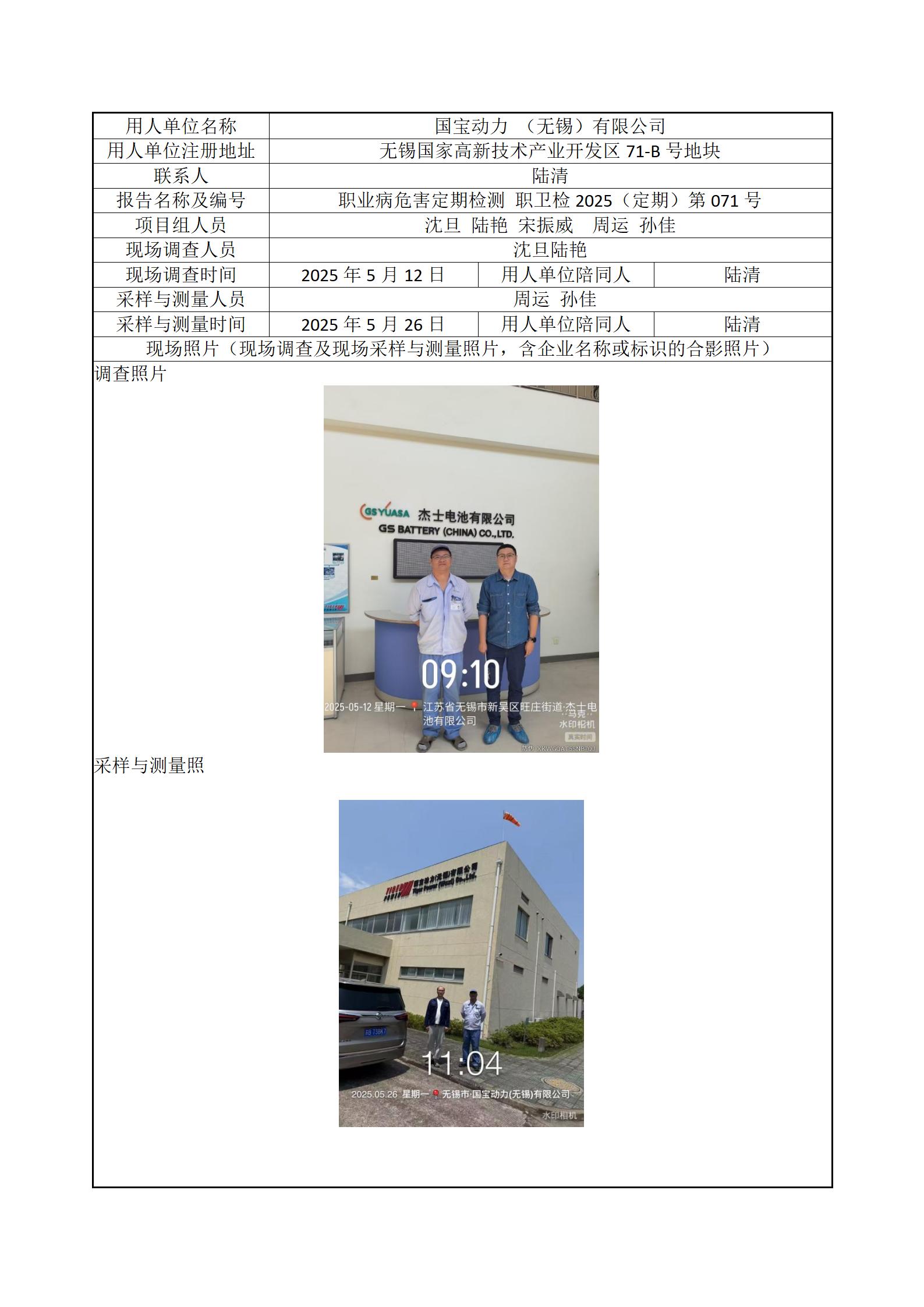 现场采样每日上报(国宝动力(无锡)有限公司)
