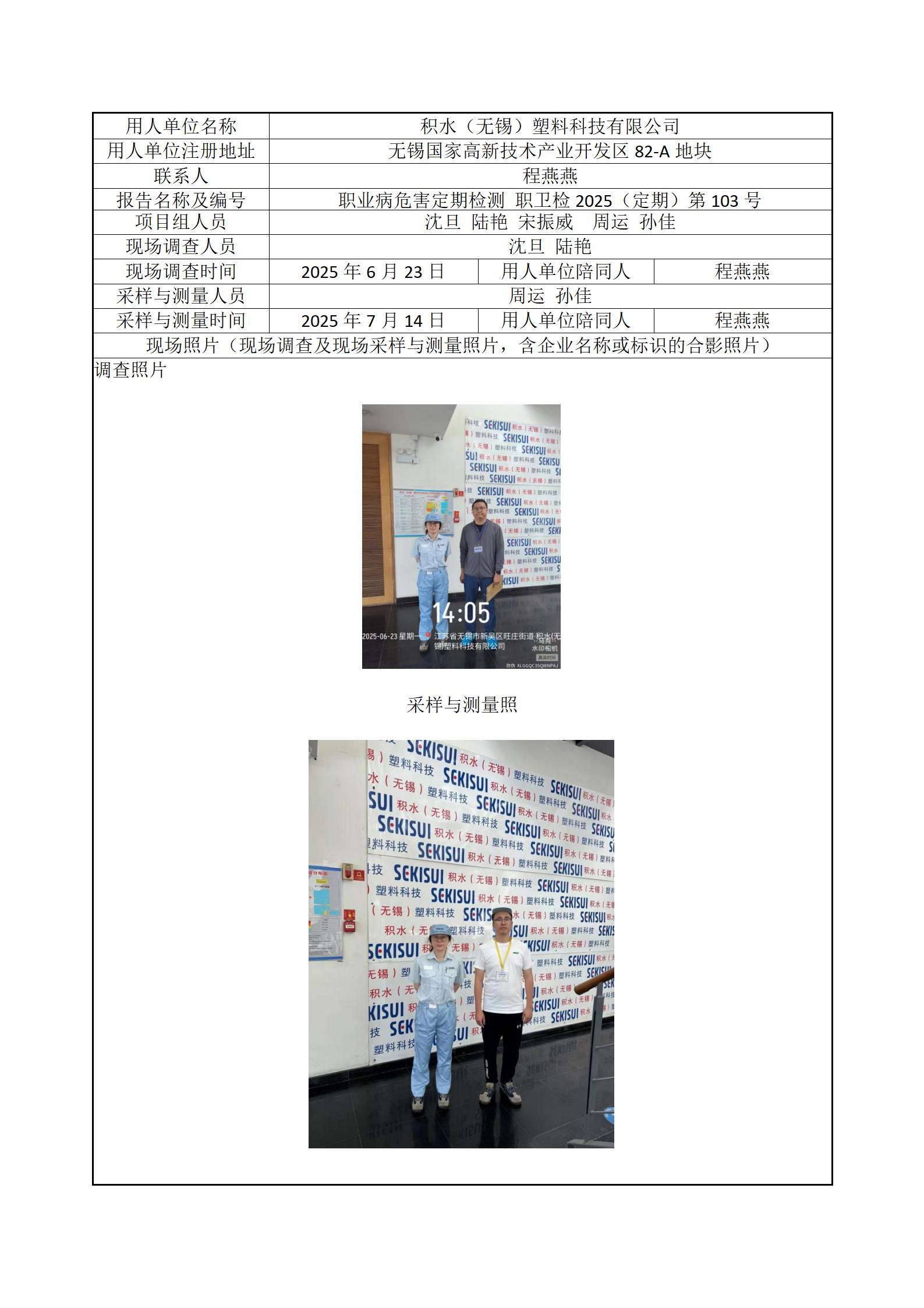 现场采样每日上报(积水(无锡)塑料科技有限公司)