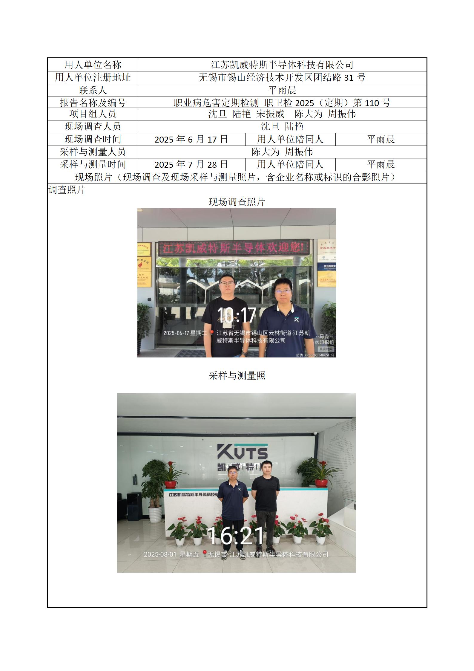 现场采样每日上报(江苏凯威特斯半导体科技有限公司)