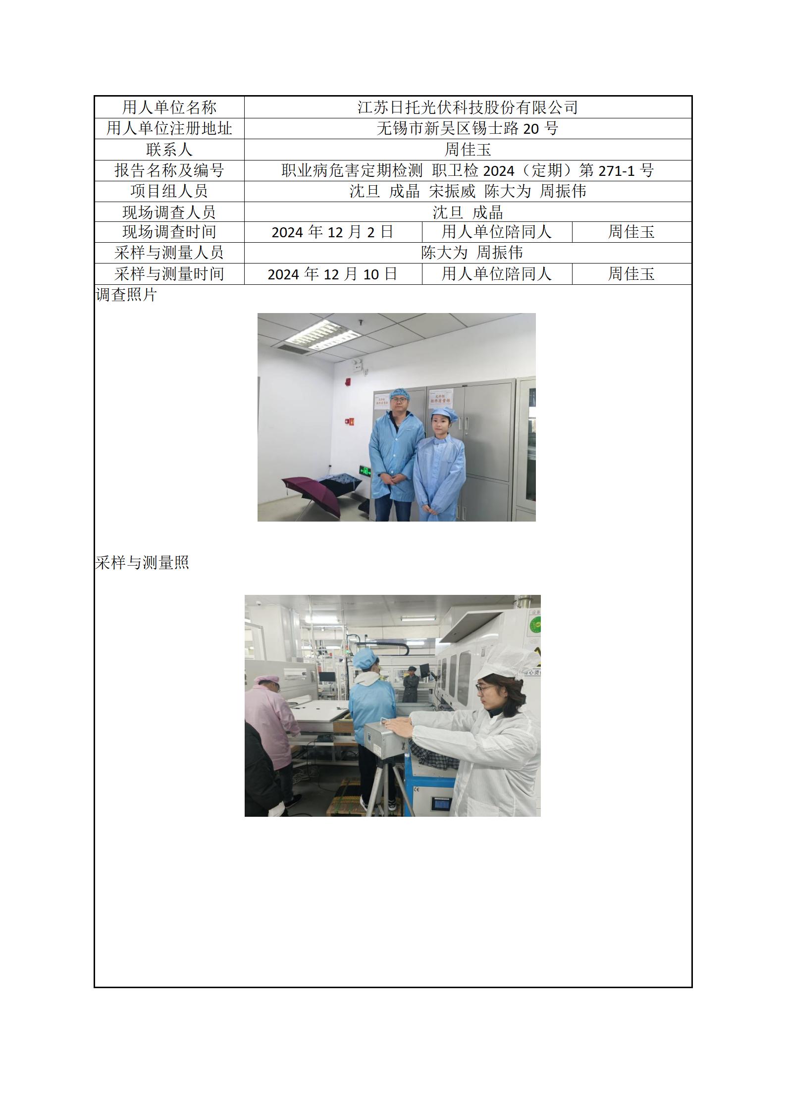 现场采样每日上报(江苏日托光伏科技股份有限公司)