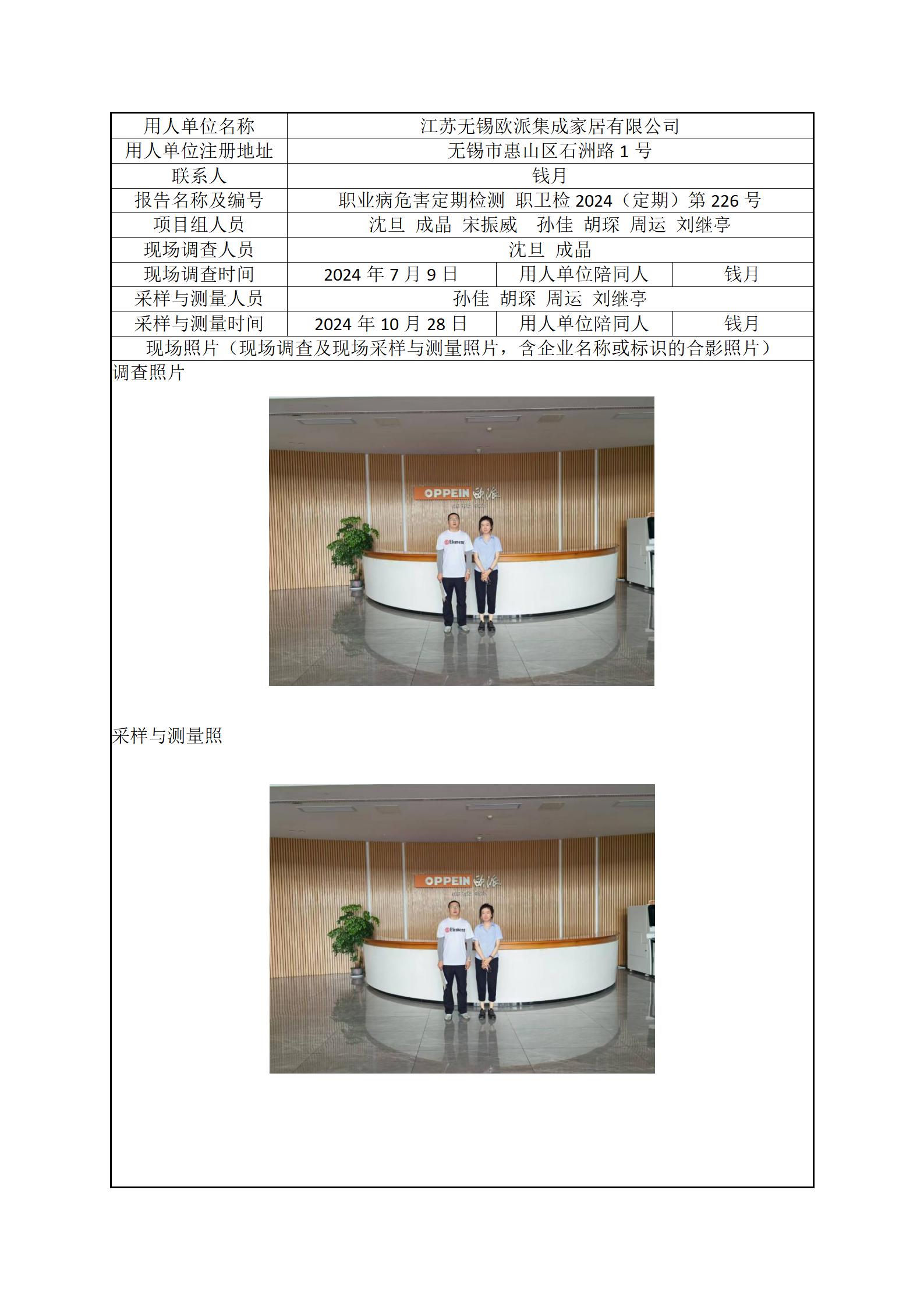 现场采样每日上报(江苏无锡欧派集成家居有限公司)