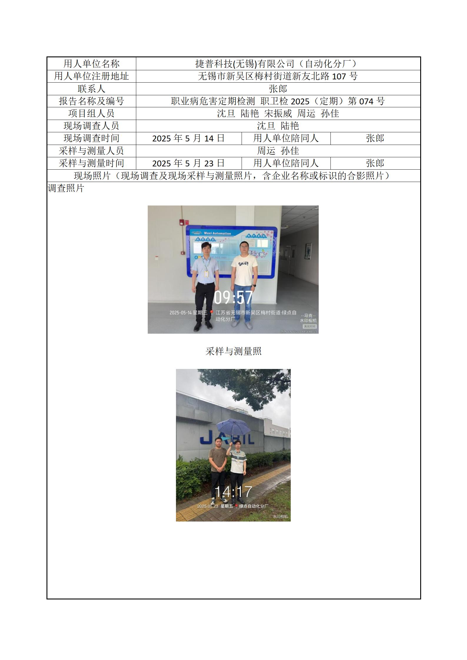 现场采样每日上报(捷普科技(无锡)有限公司(自动化分厂))