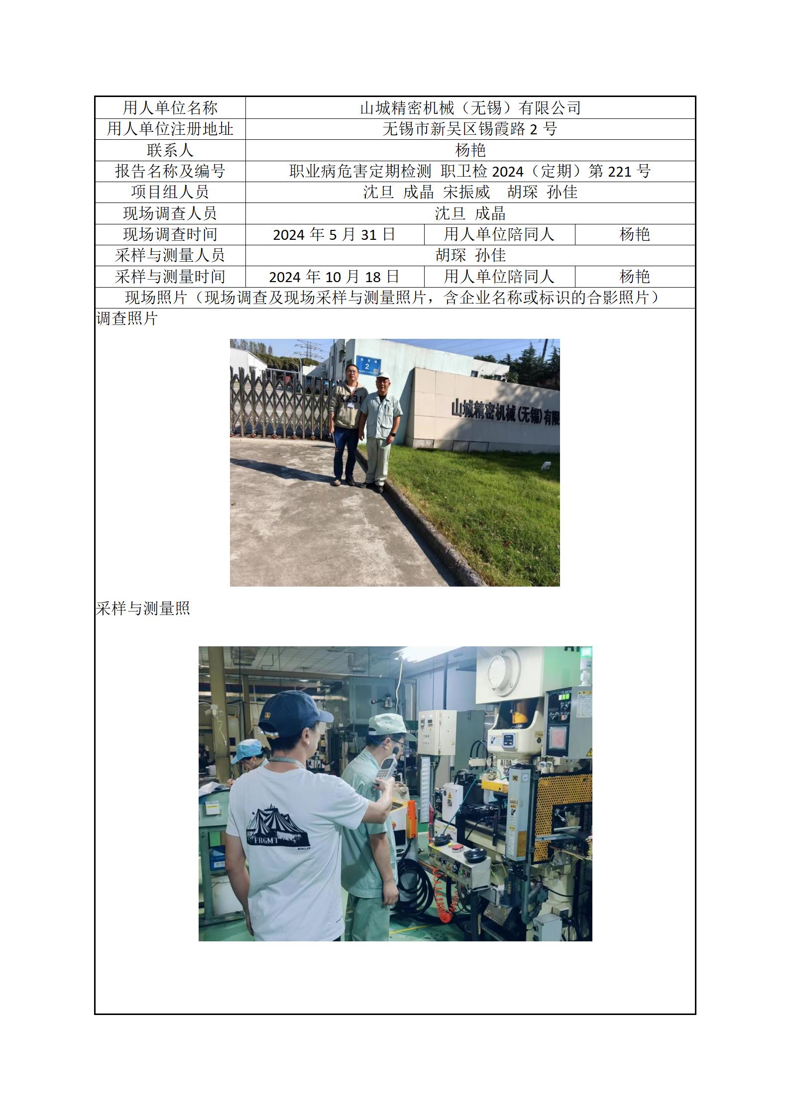 现场采样每日上报(山城精密机械(无锡)有限公司)