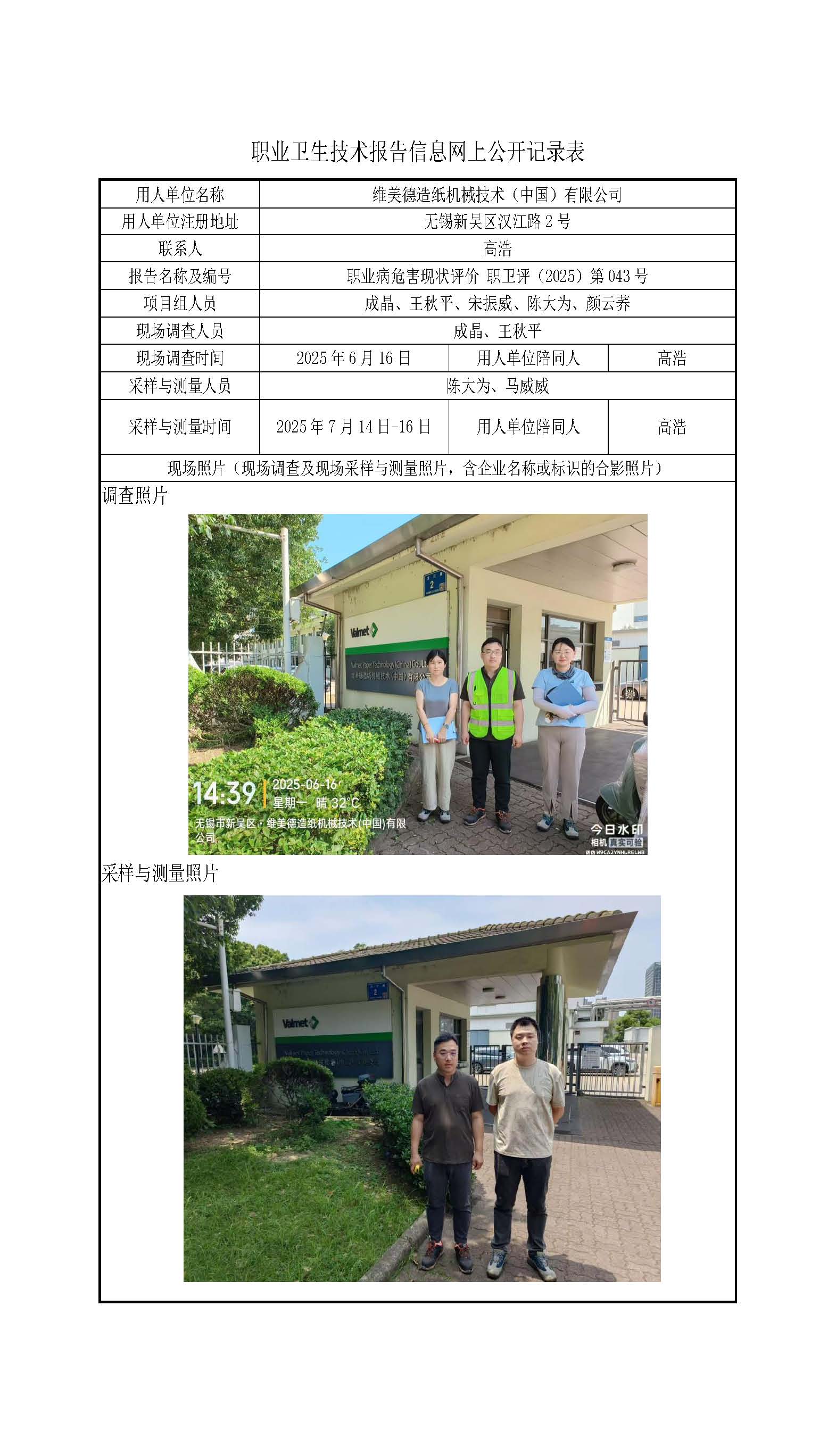 现场采样每日上报(维美德造纸机械技术(中国)有限公司)