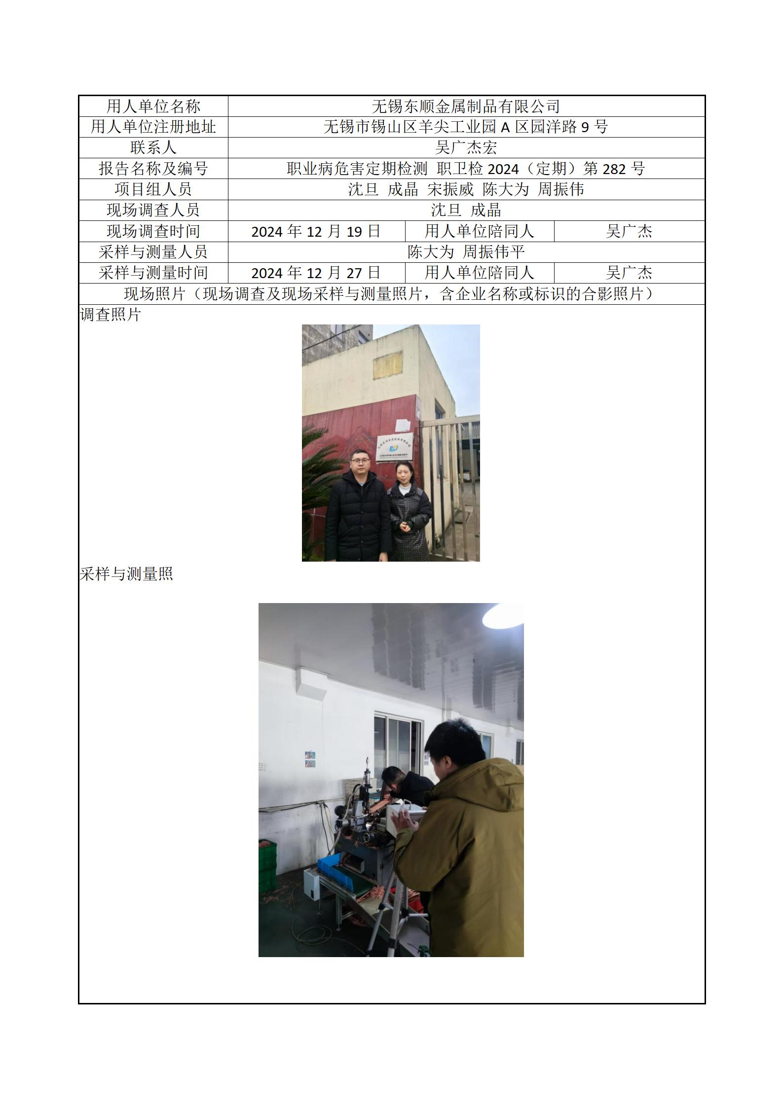 现场采样每日上报(无锡东顺金属制品有限公司)