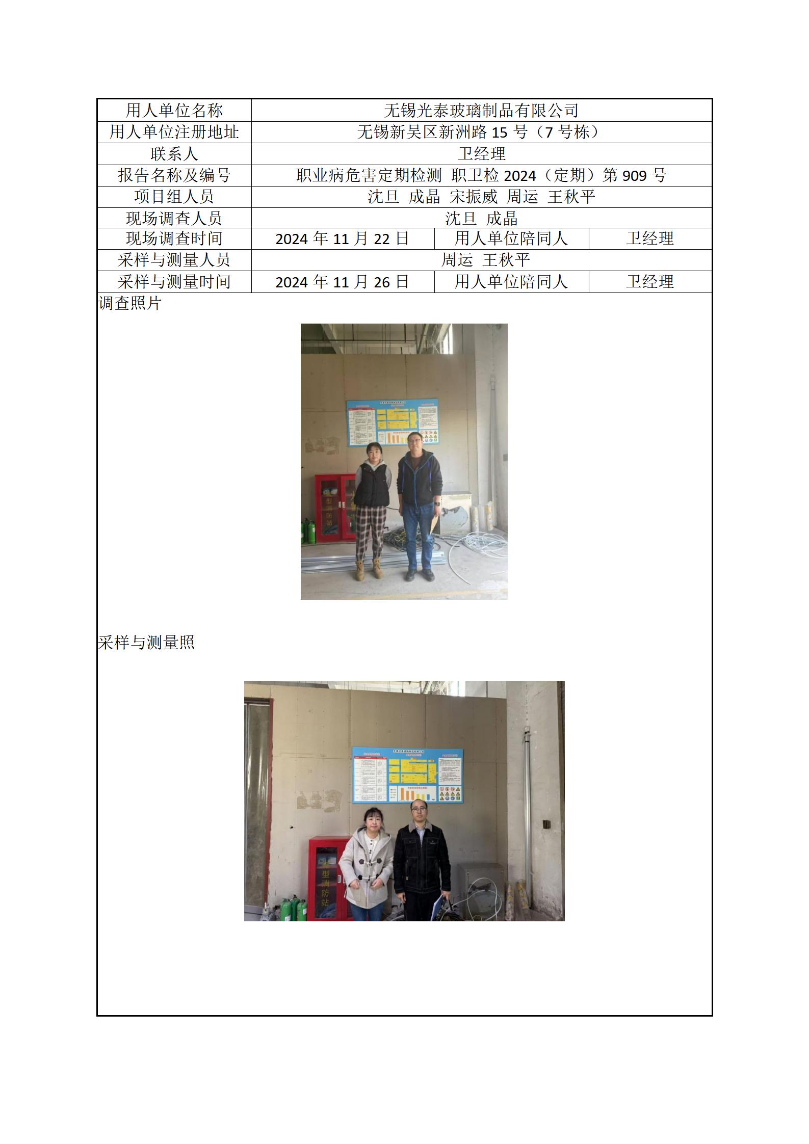 现场采样每日上报(无锡光泰玻璃制品有限公司)