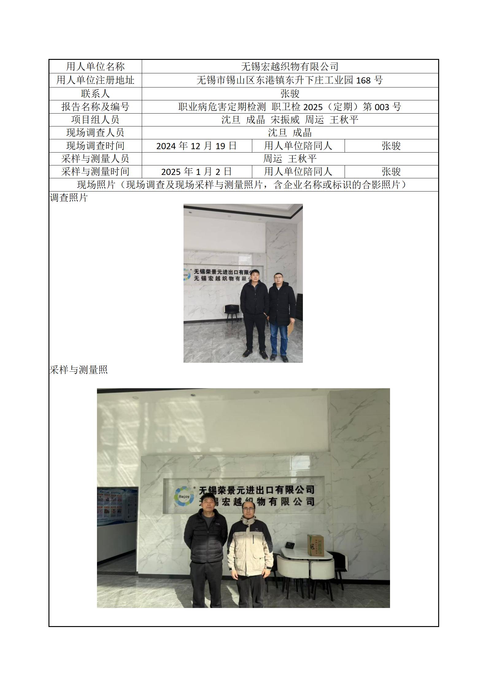 现场采样每日上报(无锡宏越织物有限公司)