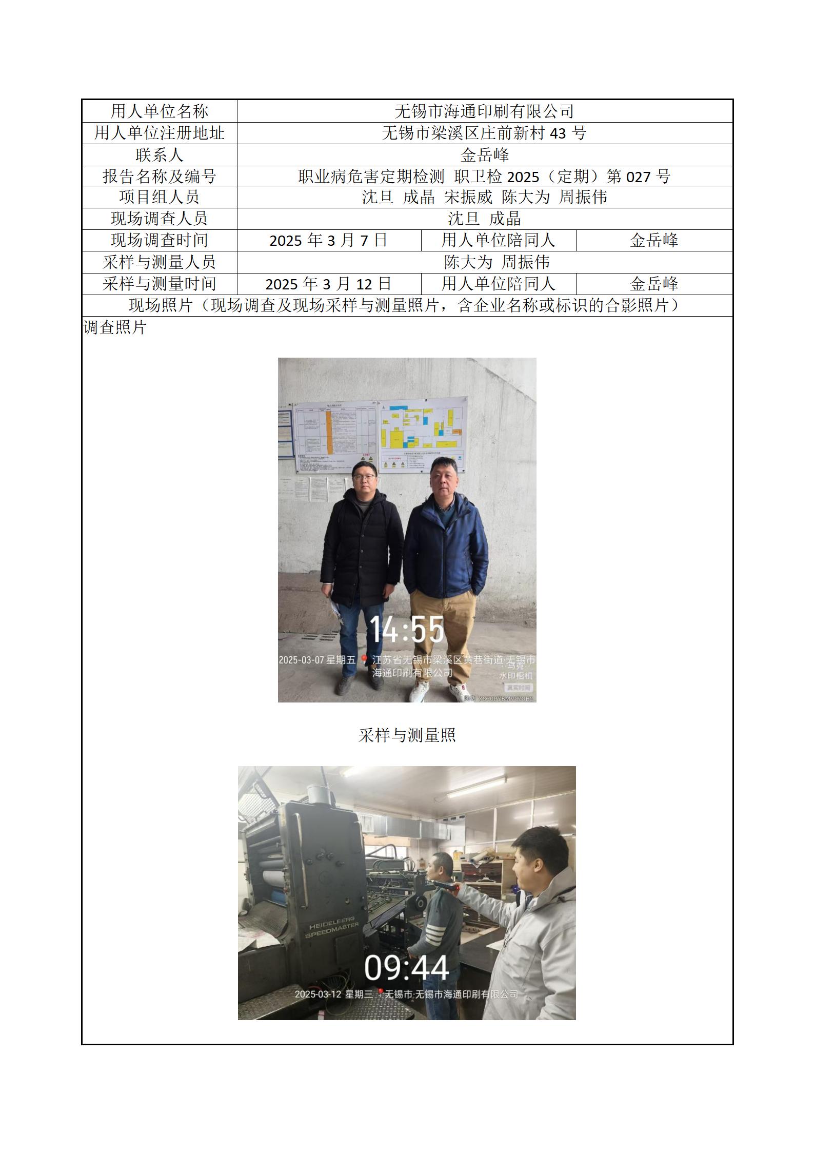 现场采样每日上报(无锡市海通印刷有限公司)