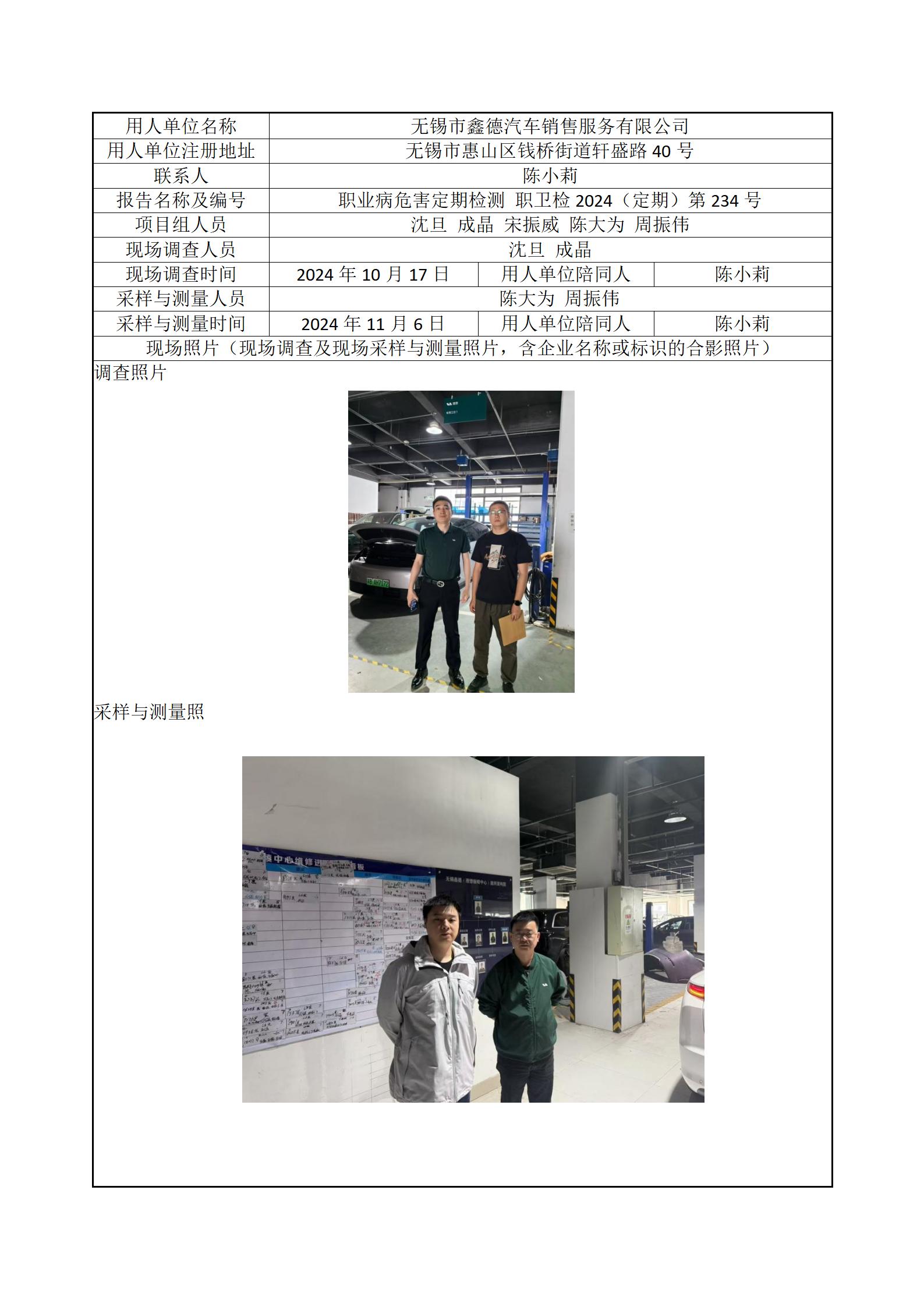 现场采样每日上报(无锡市鑫德汽车销售服务有限公司)