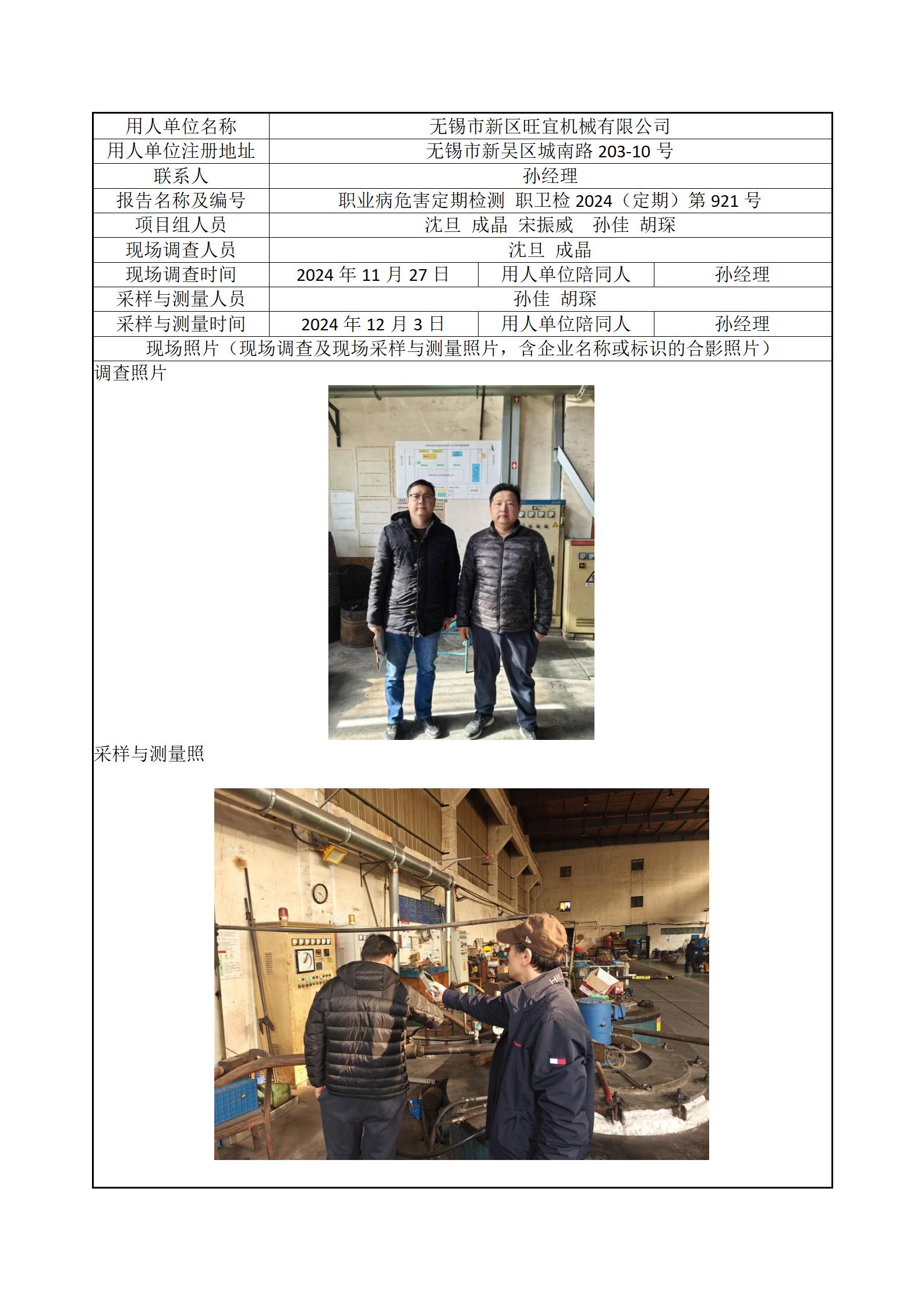 现场采样每日上报(无锡市新区旺宜机械有限公司)