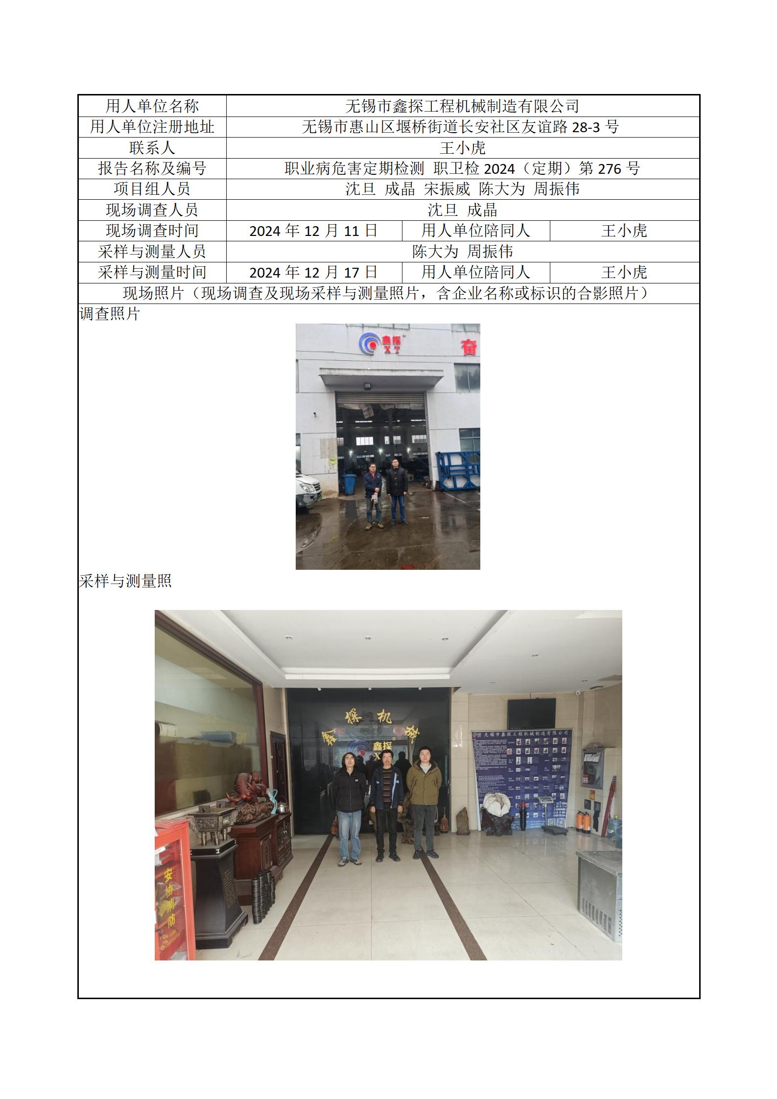 现场采样每日上报(无锡市鑫探工程机械制造有限公司)