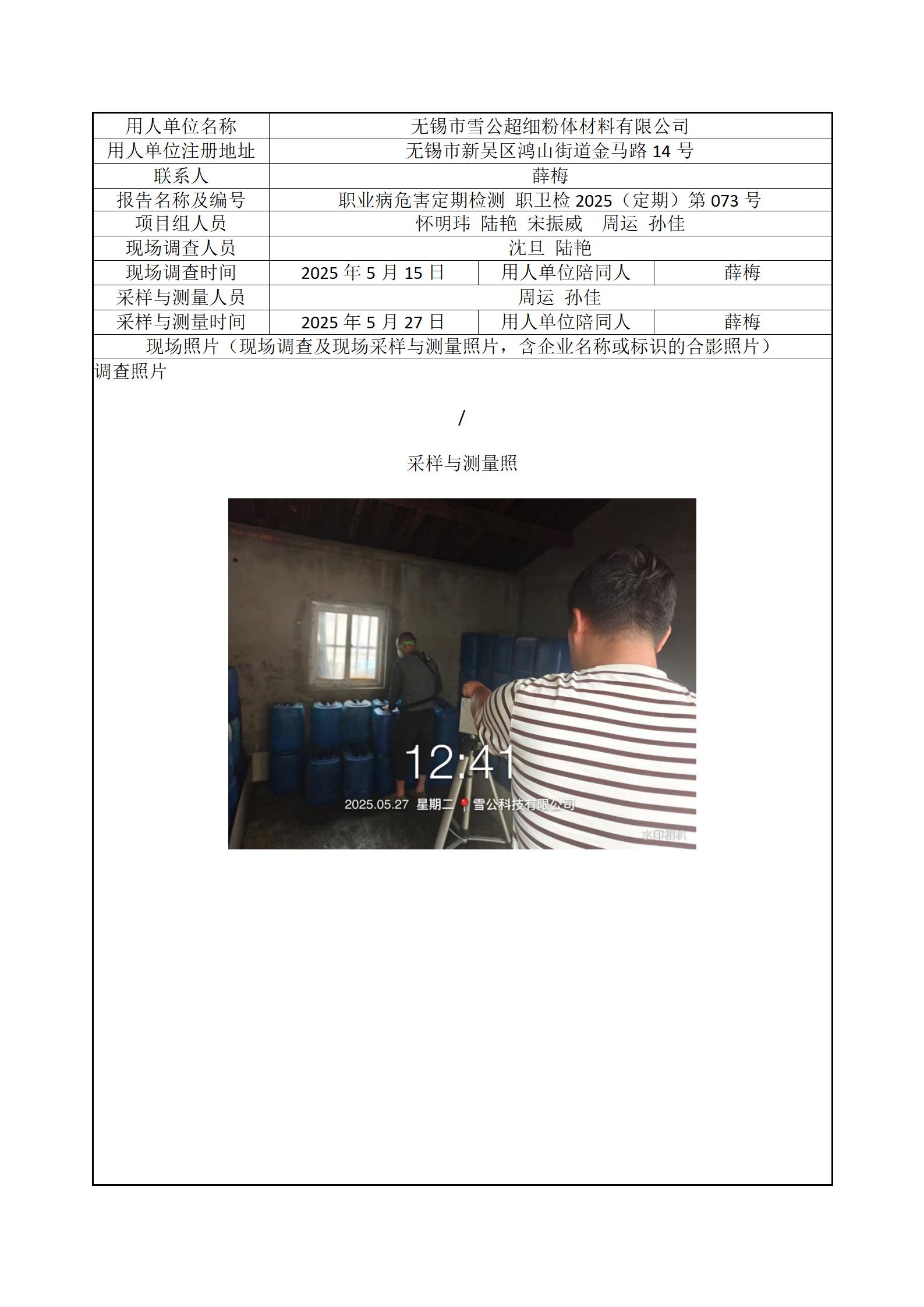 现场采样每日上报(无锡市雪公超细粉体材料有限公司)