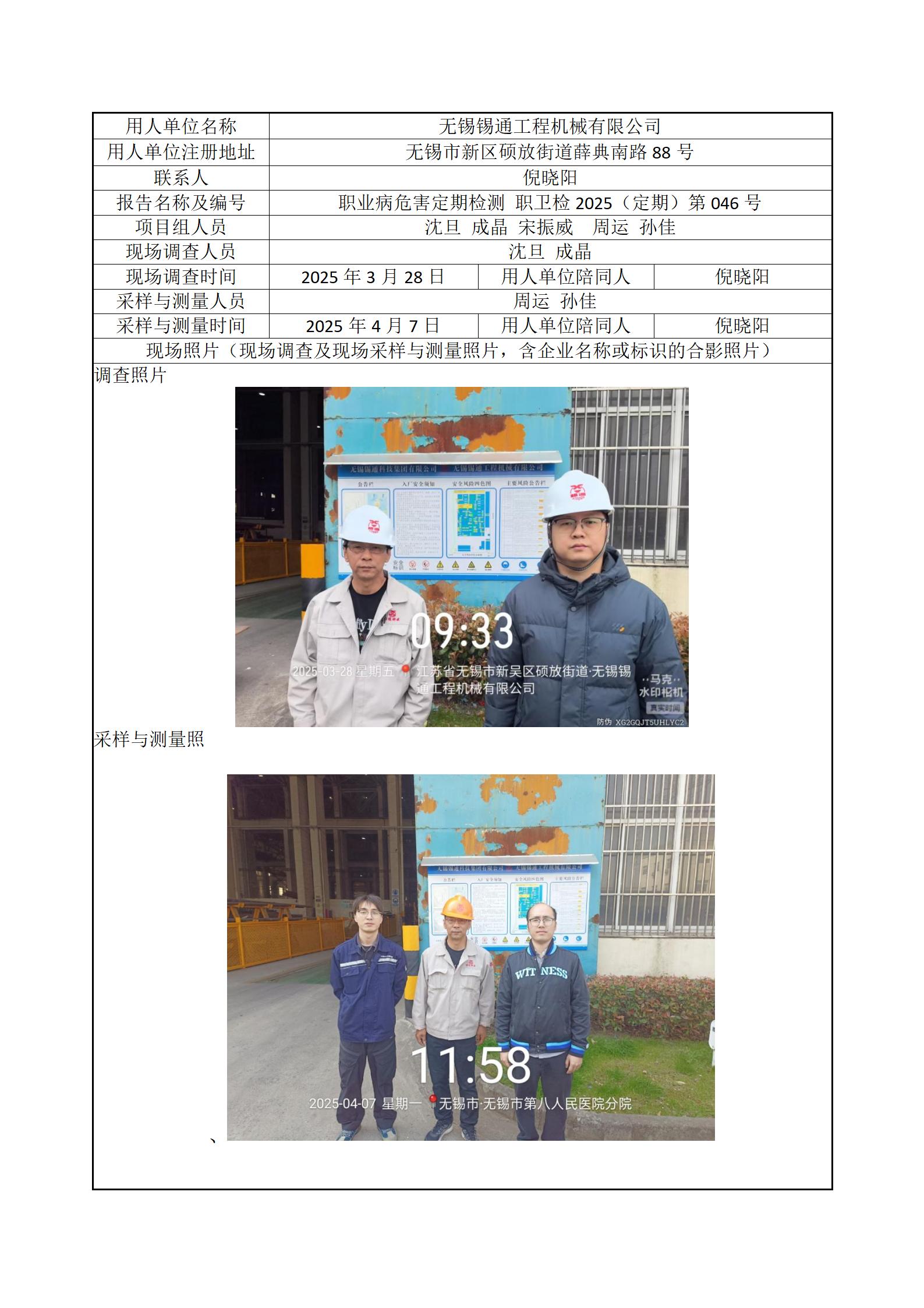 现场采样每日上报(无锡锡通工程机械有限公司)