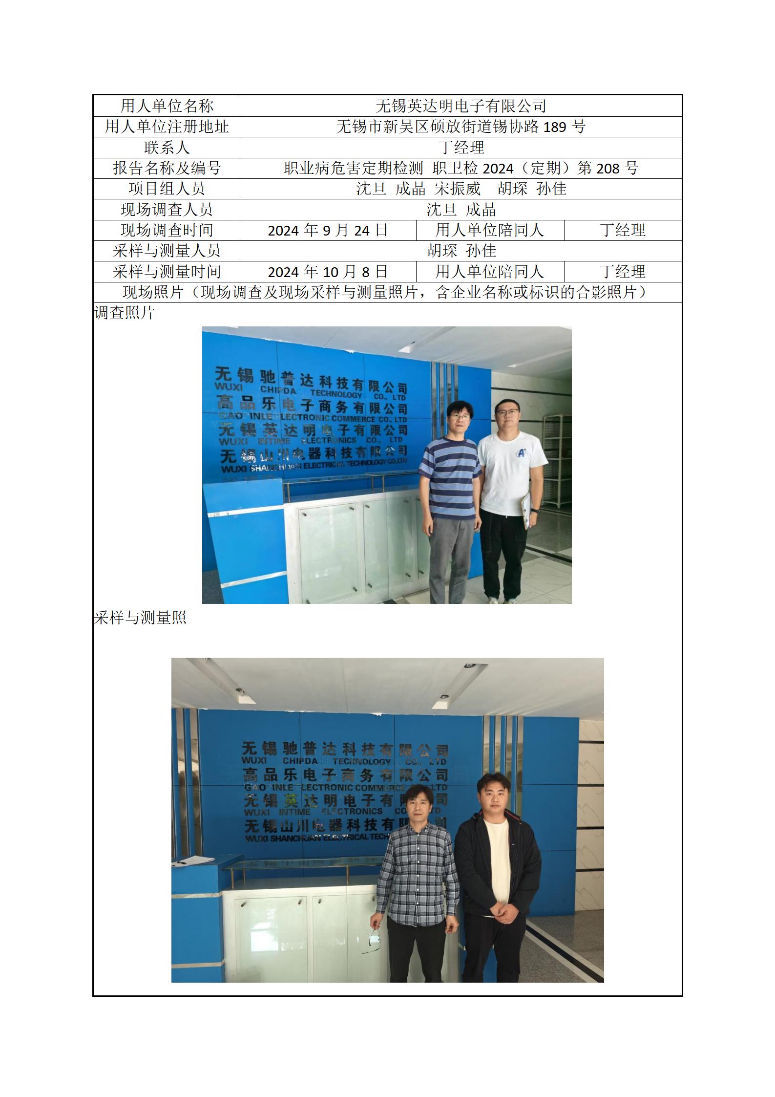 现场采样每日上报(无锡英大明电子有限公司)