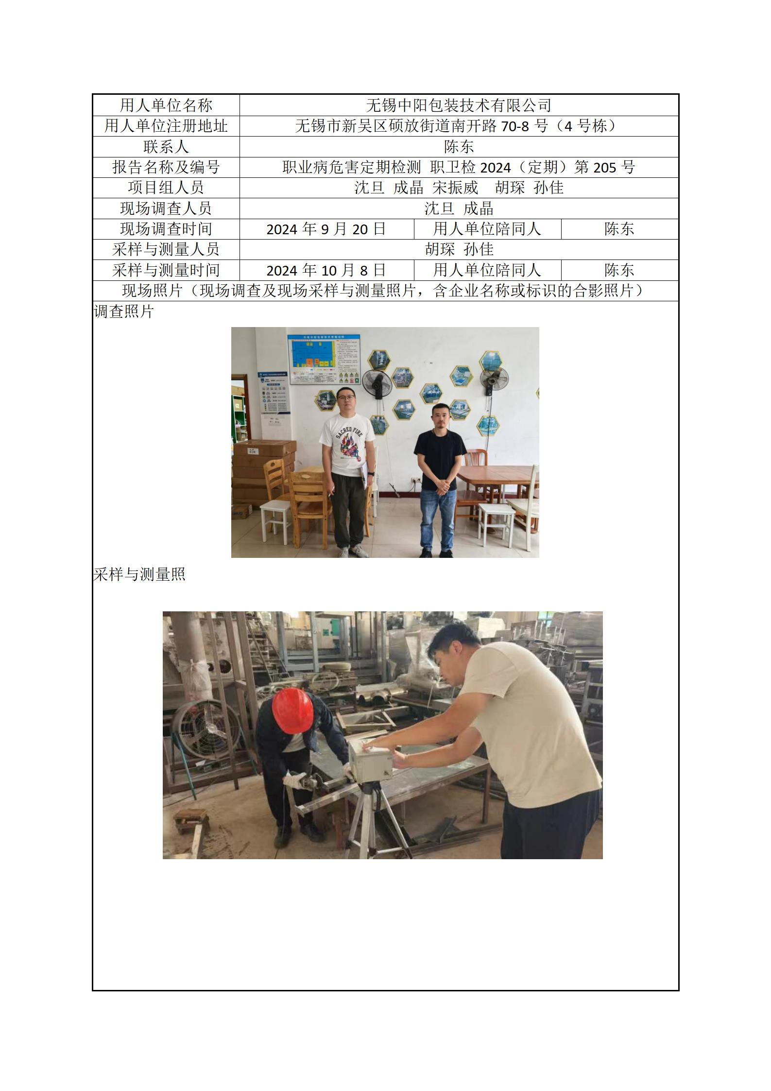 现场采样每日上报(无锡中阳包装技术有限公司)