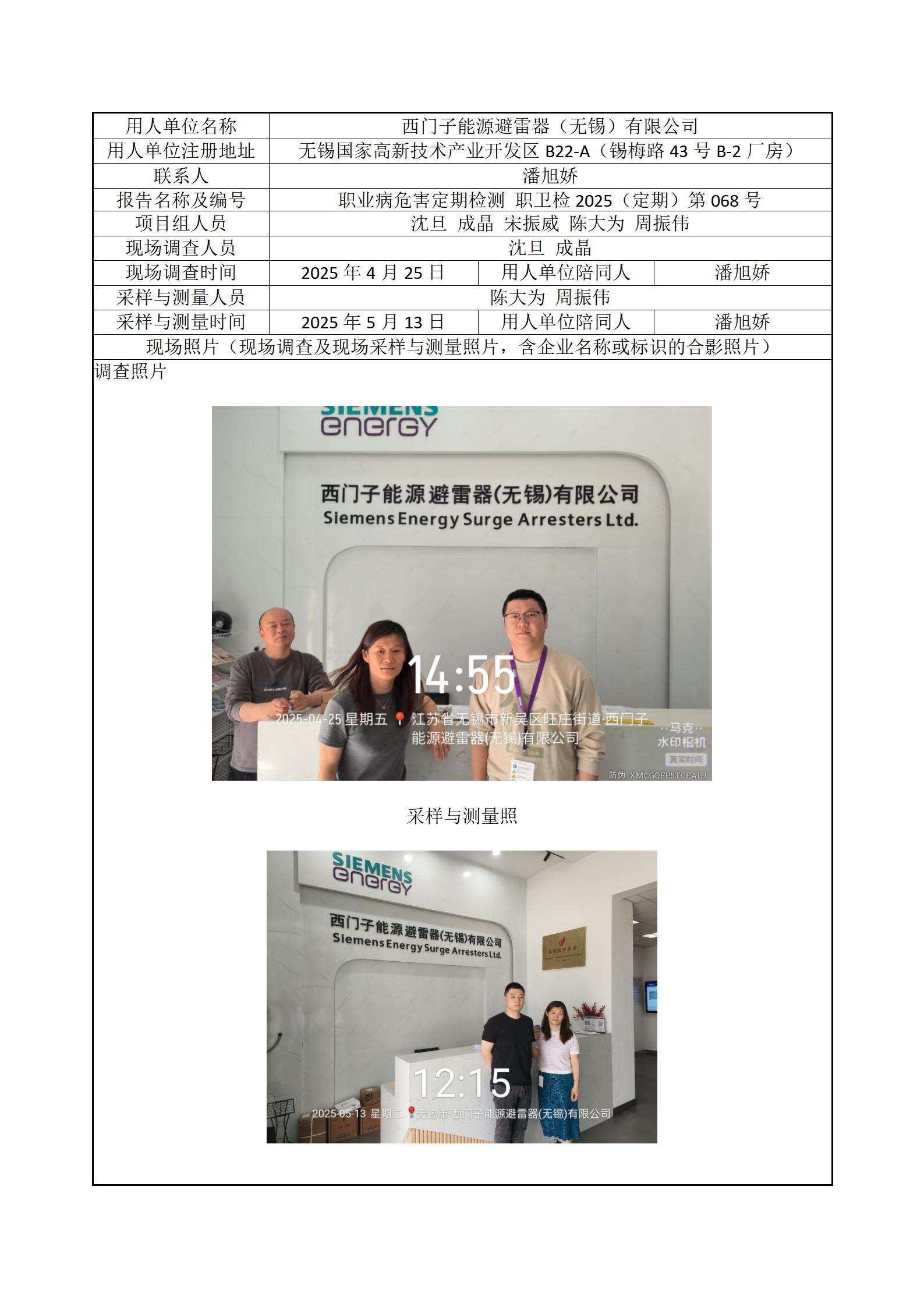 现场采样每日上报(西门子能源避雷器(无锡)有限公司)