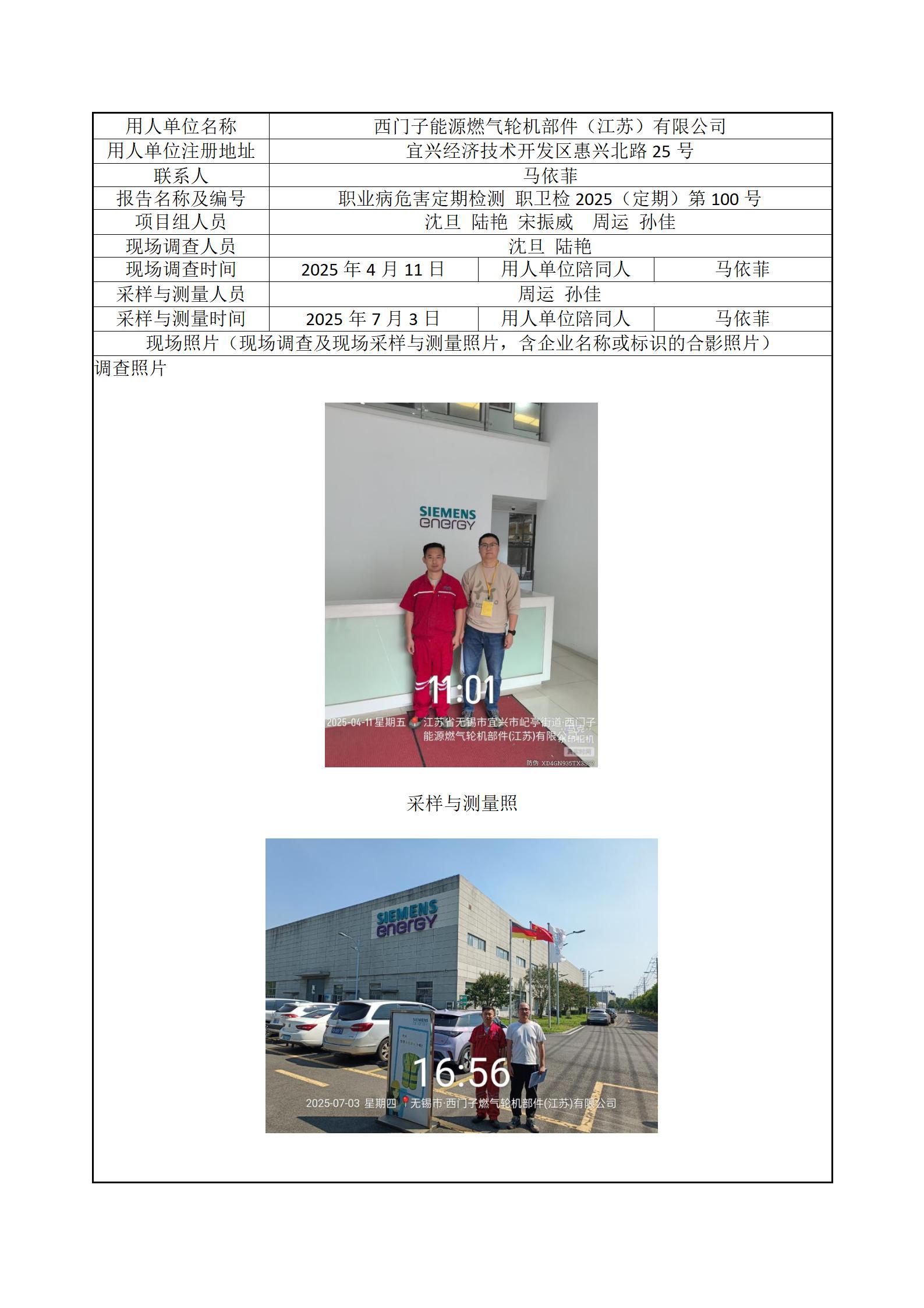 现场采样每日上报(西门子能源燃气轮机部件(江苏)有限公司)