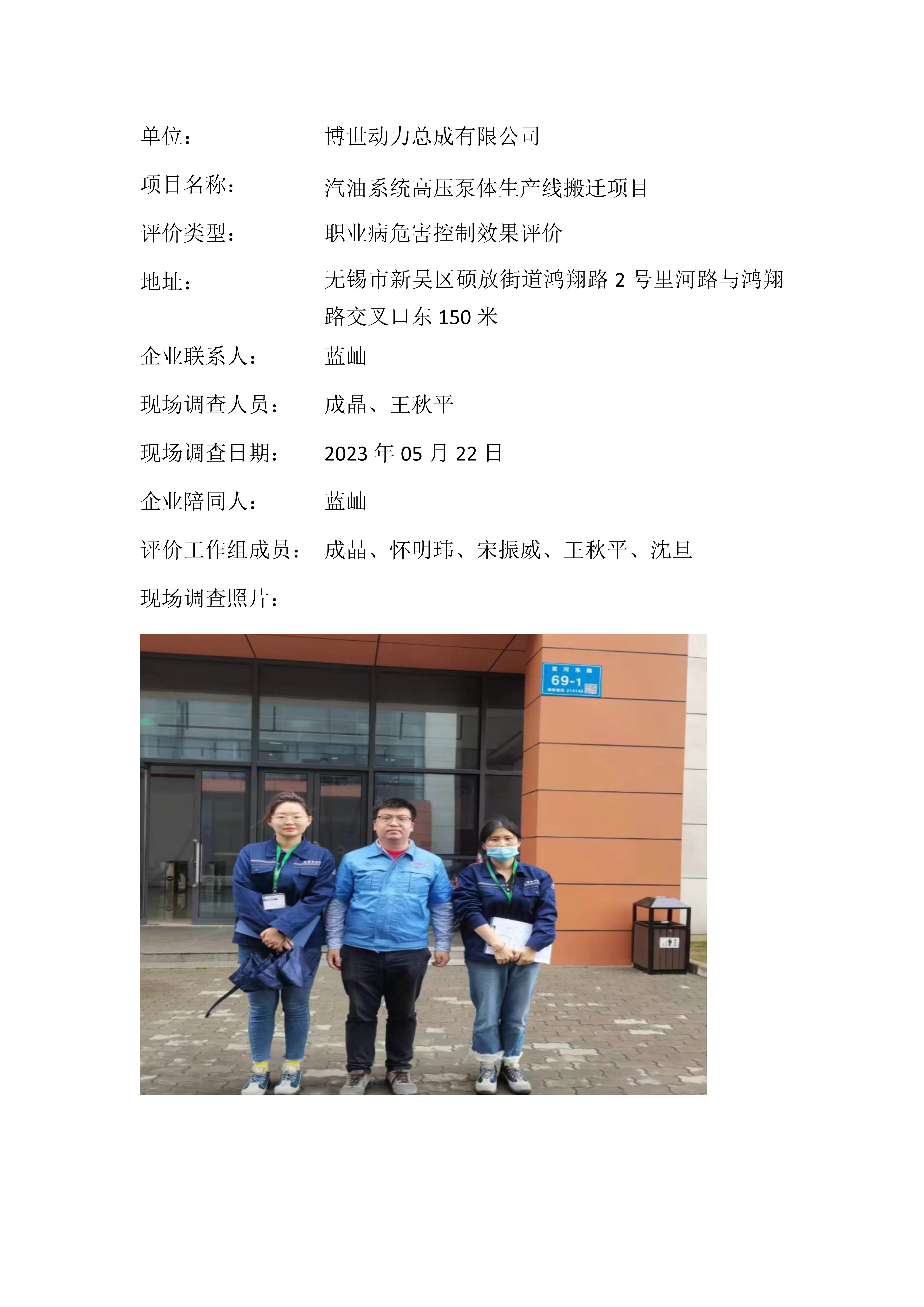 【职业病危害控制效果评价报告】博世动力总成有限公司