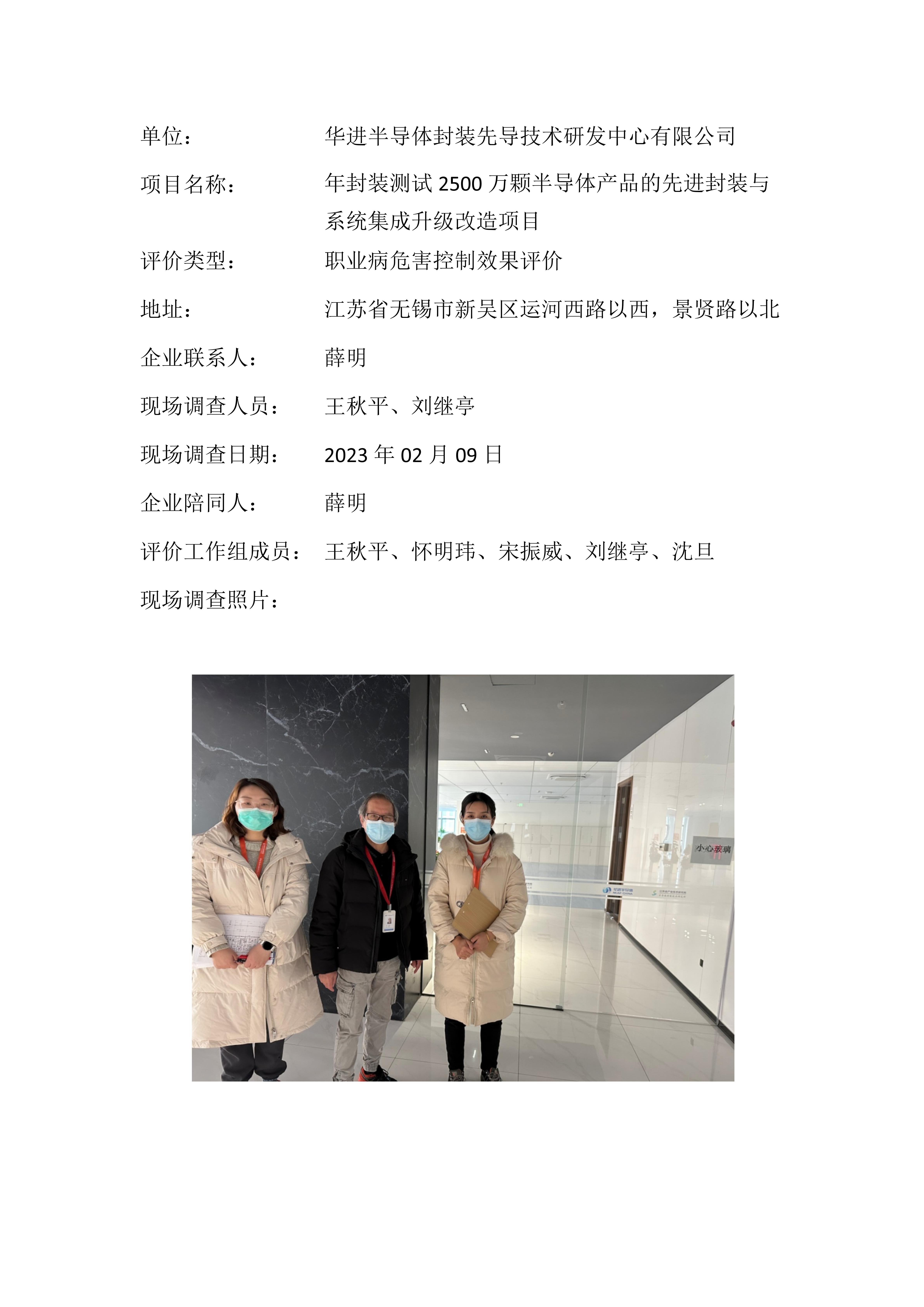 【职业病危害控制效果评价报告】华进半导体封装先导技术研发中心有限公司