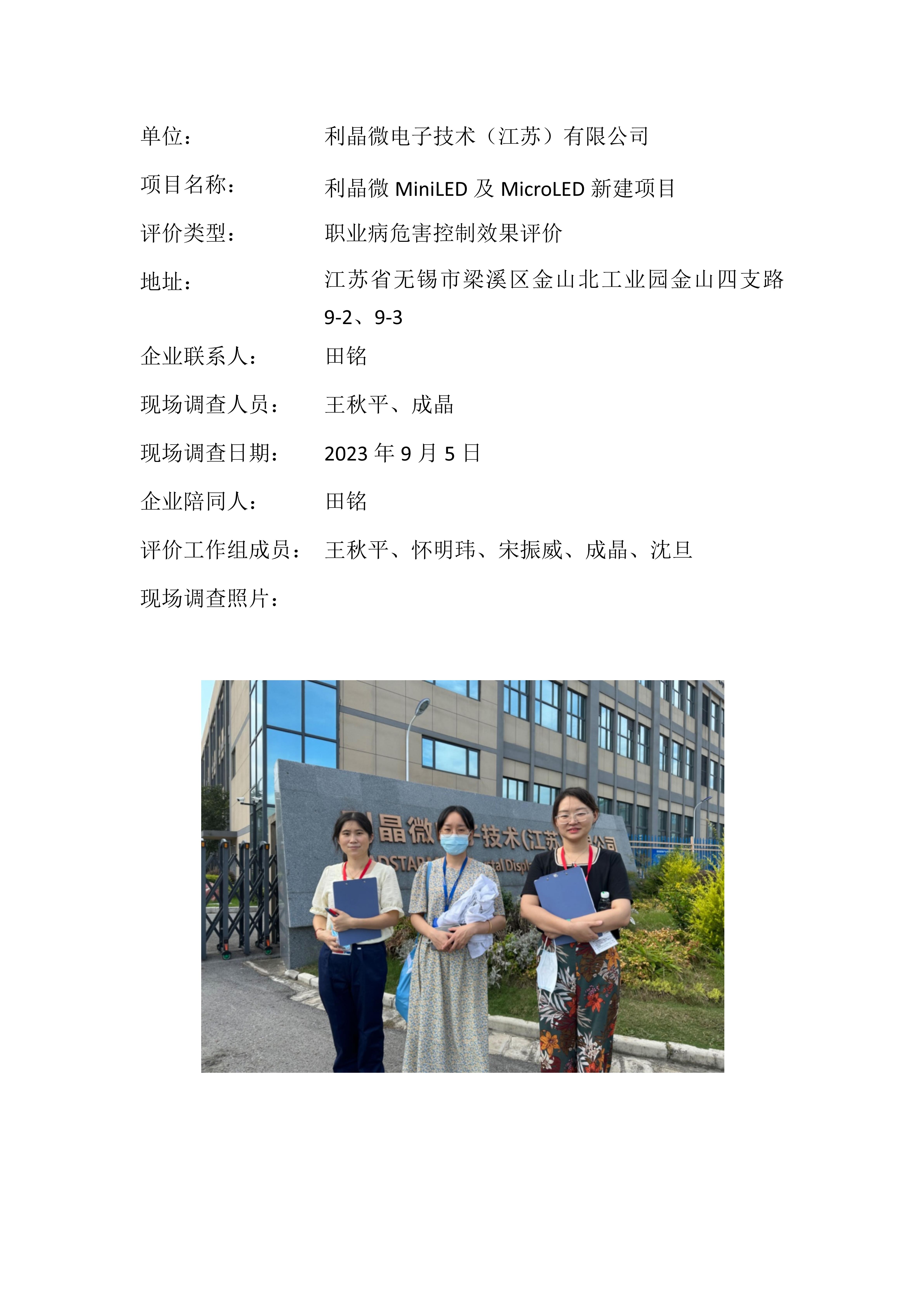 【职业病危害控制效果评价报告】利晶微电子技术(江苏)有限公司