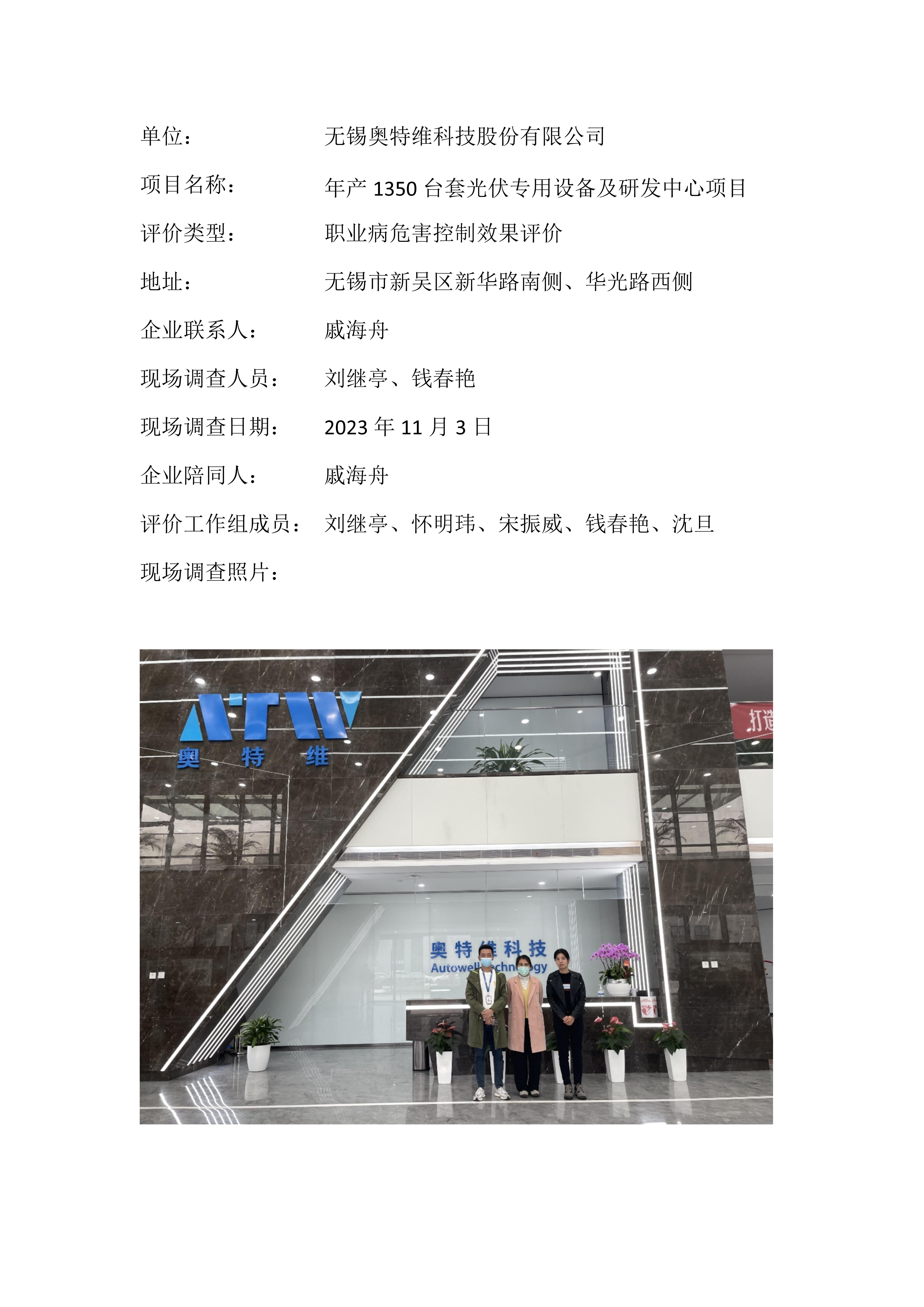 【职业病危害控制效果评价报告】无锡奥特维科技股份有限公司-年产1350台套光伏专用设备及研发中心项目