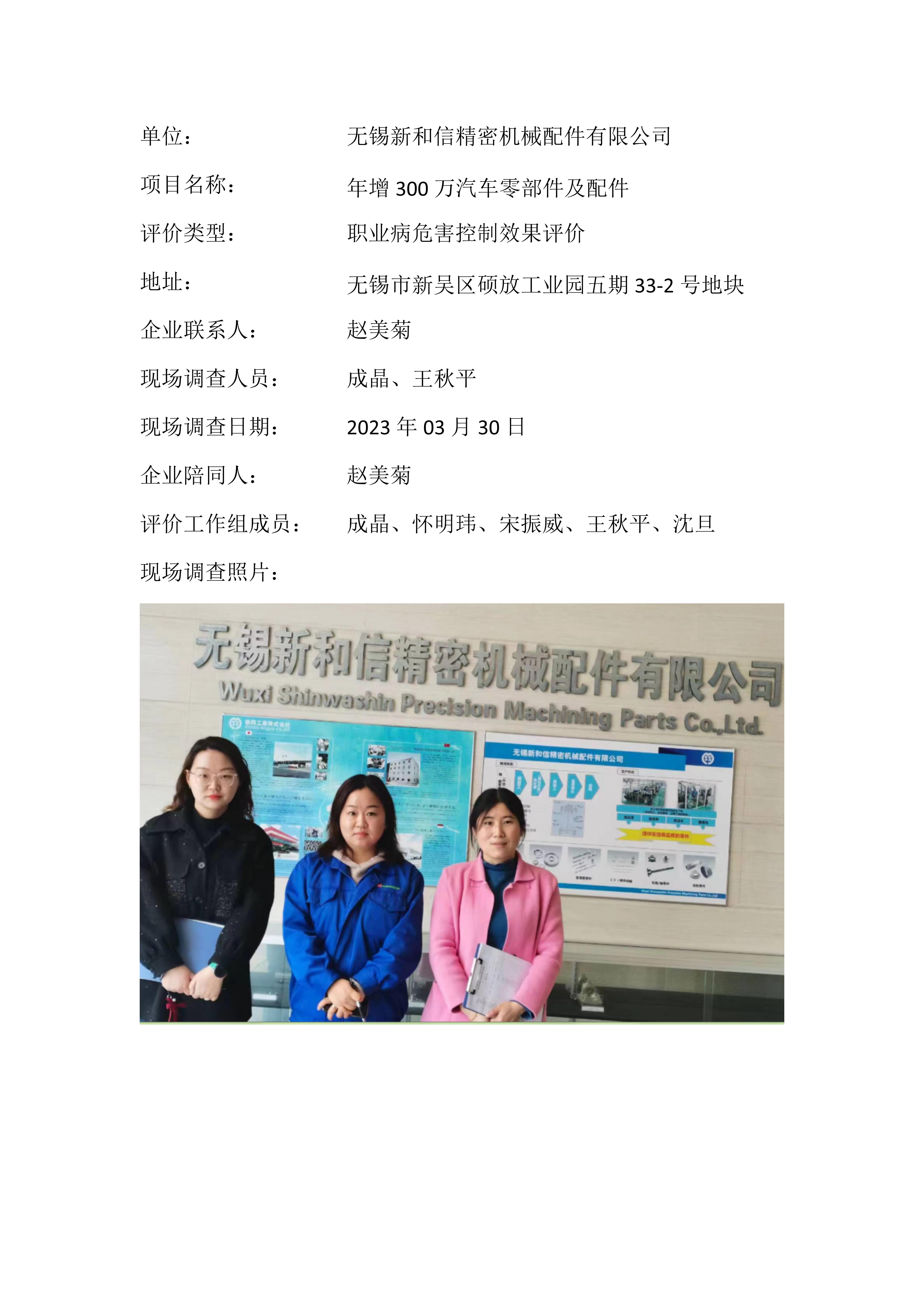 【职业病危害控制效果评价报告】无锡新和信精密机械配件有限公司