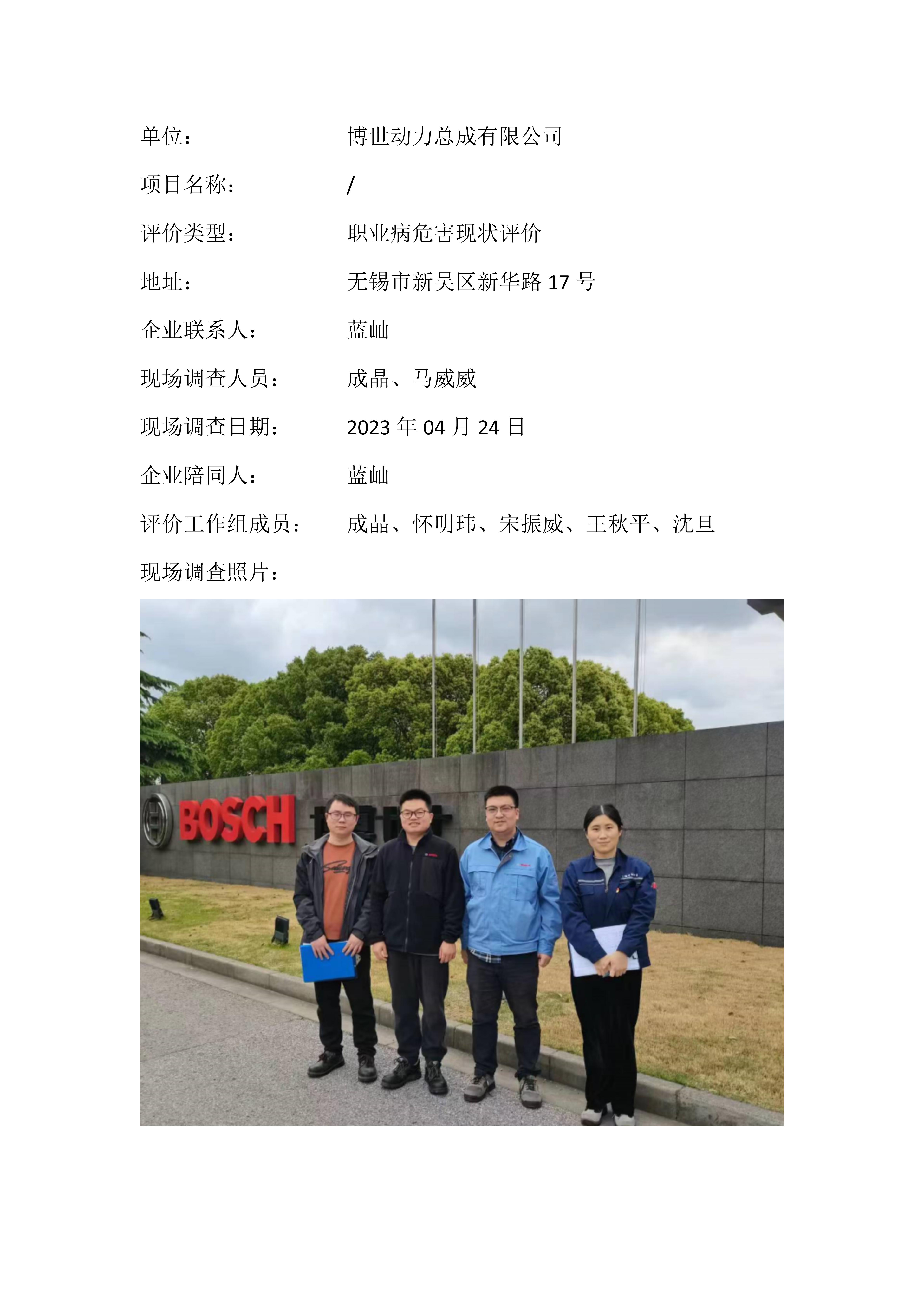 【职业病危害现状评价报告】博世动力总成有限公司