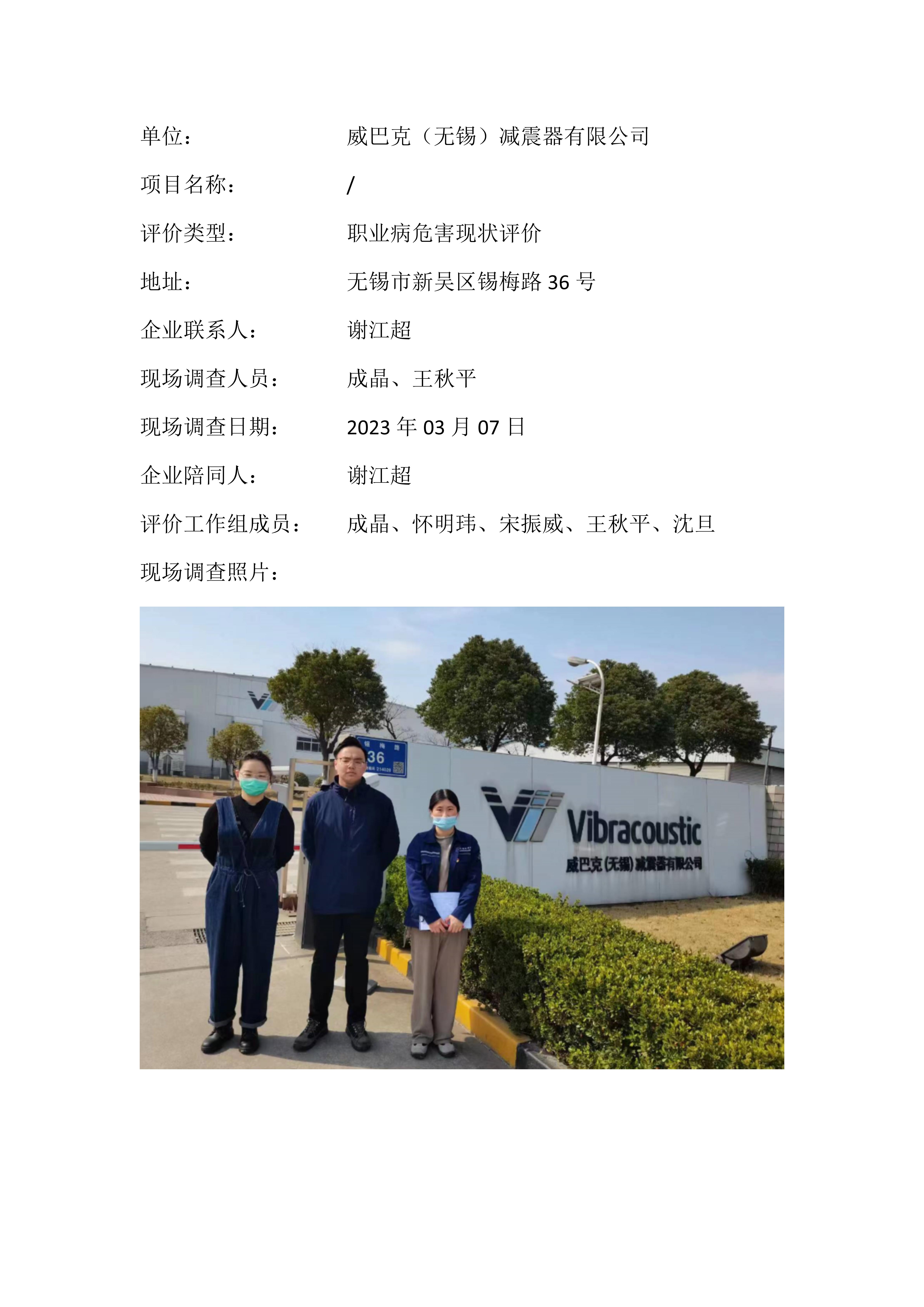 【职业病危害现状评价报告】威巴克(无锡)减震器有限公司