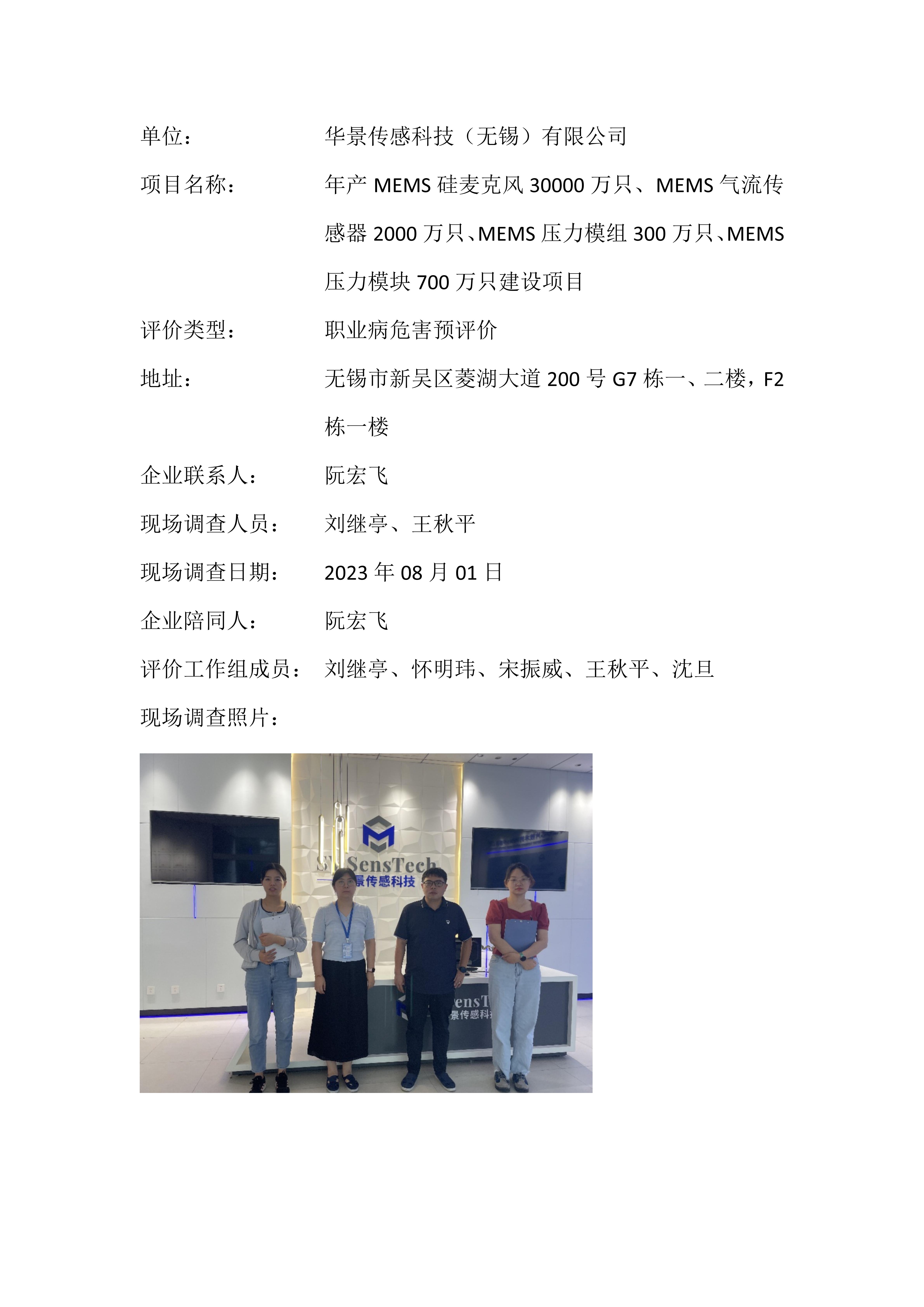 【职业病危害预评价报告】华景传感科技(无锡)有限公司