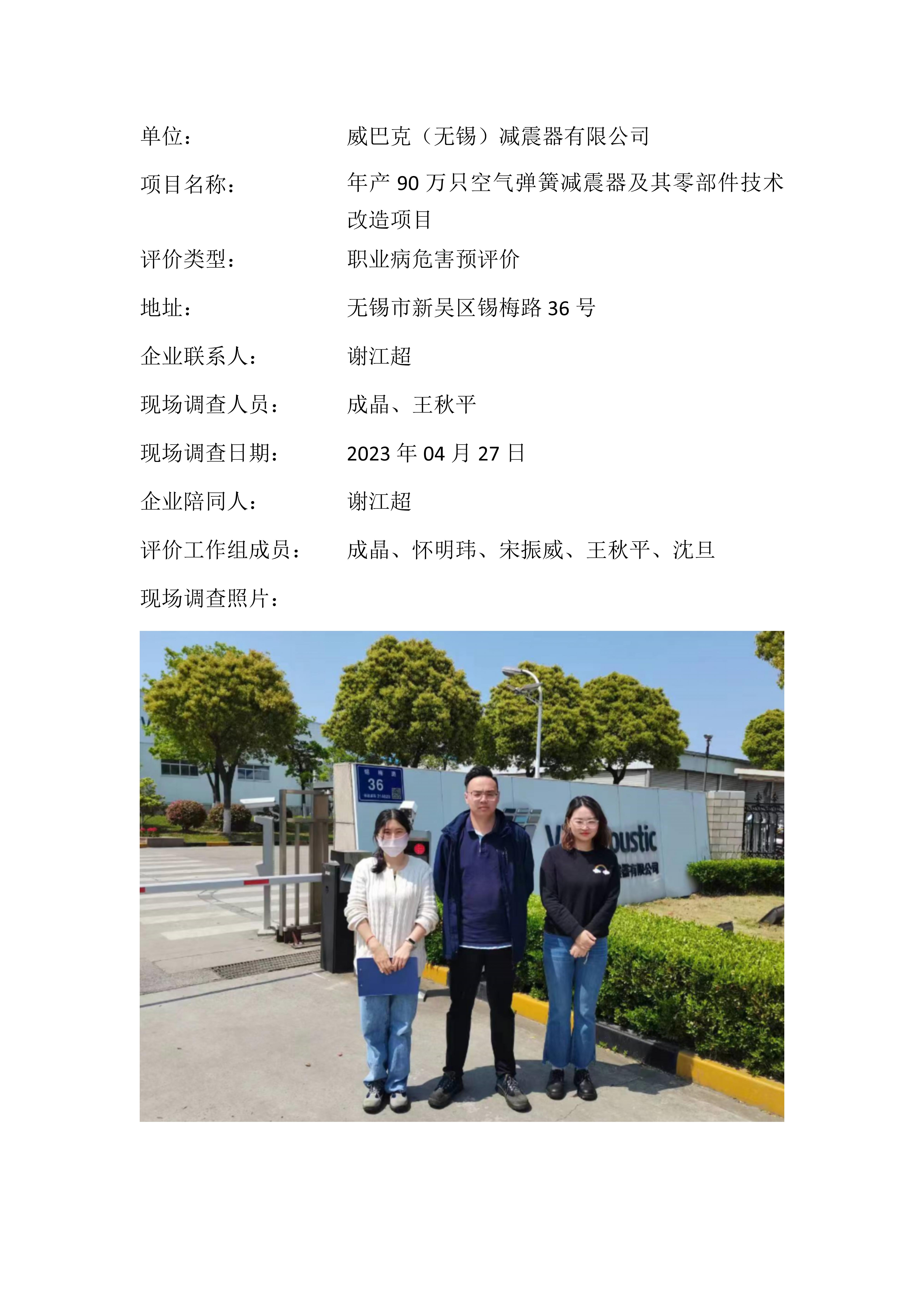 【职业病危害预评价报告】威巴克(无锡)减震器有限公司