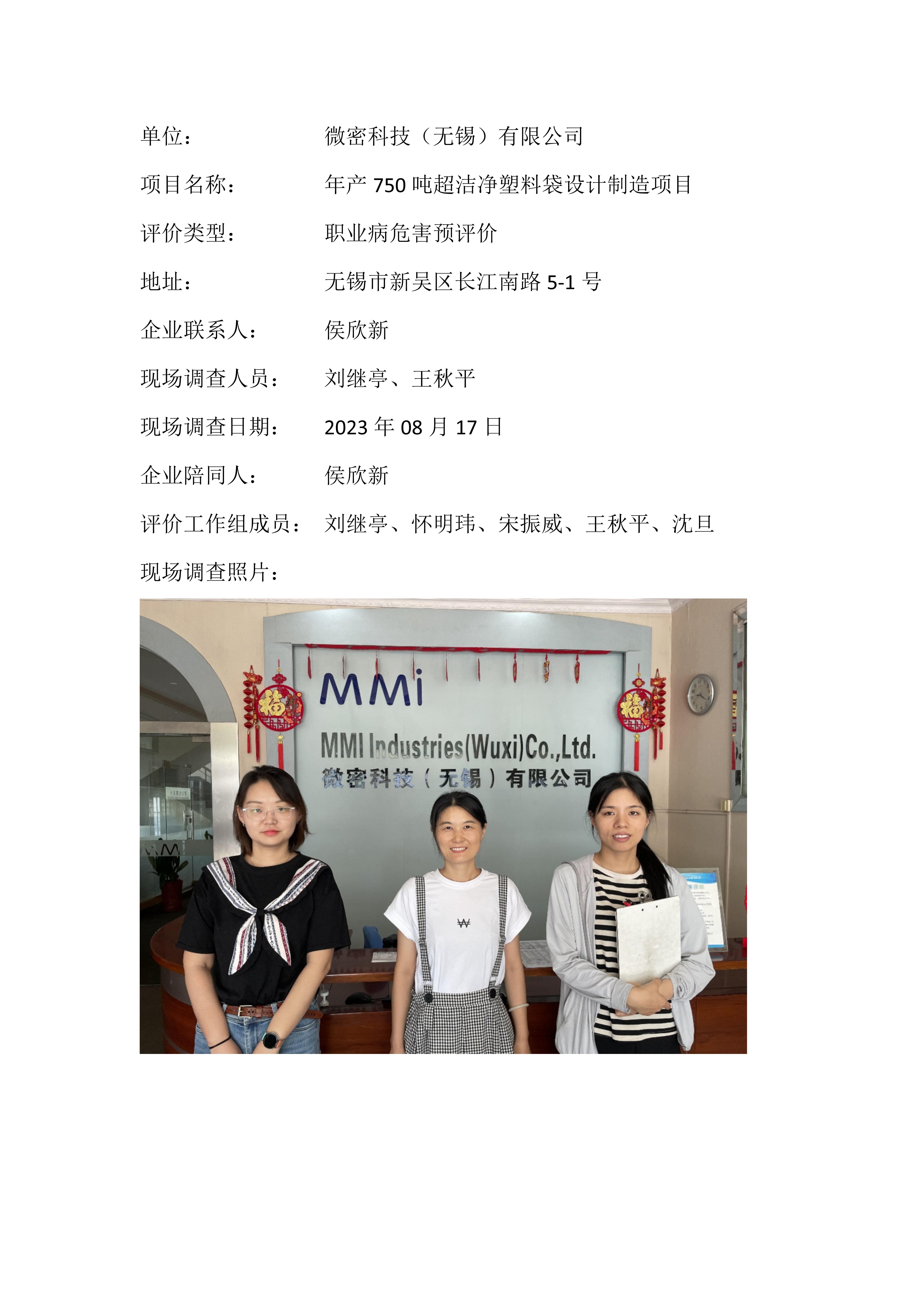 【职业病危害预评价报告】微密科技(无锡)有限公司