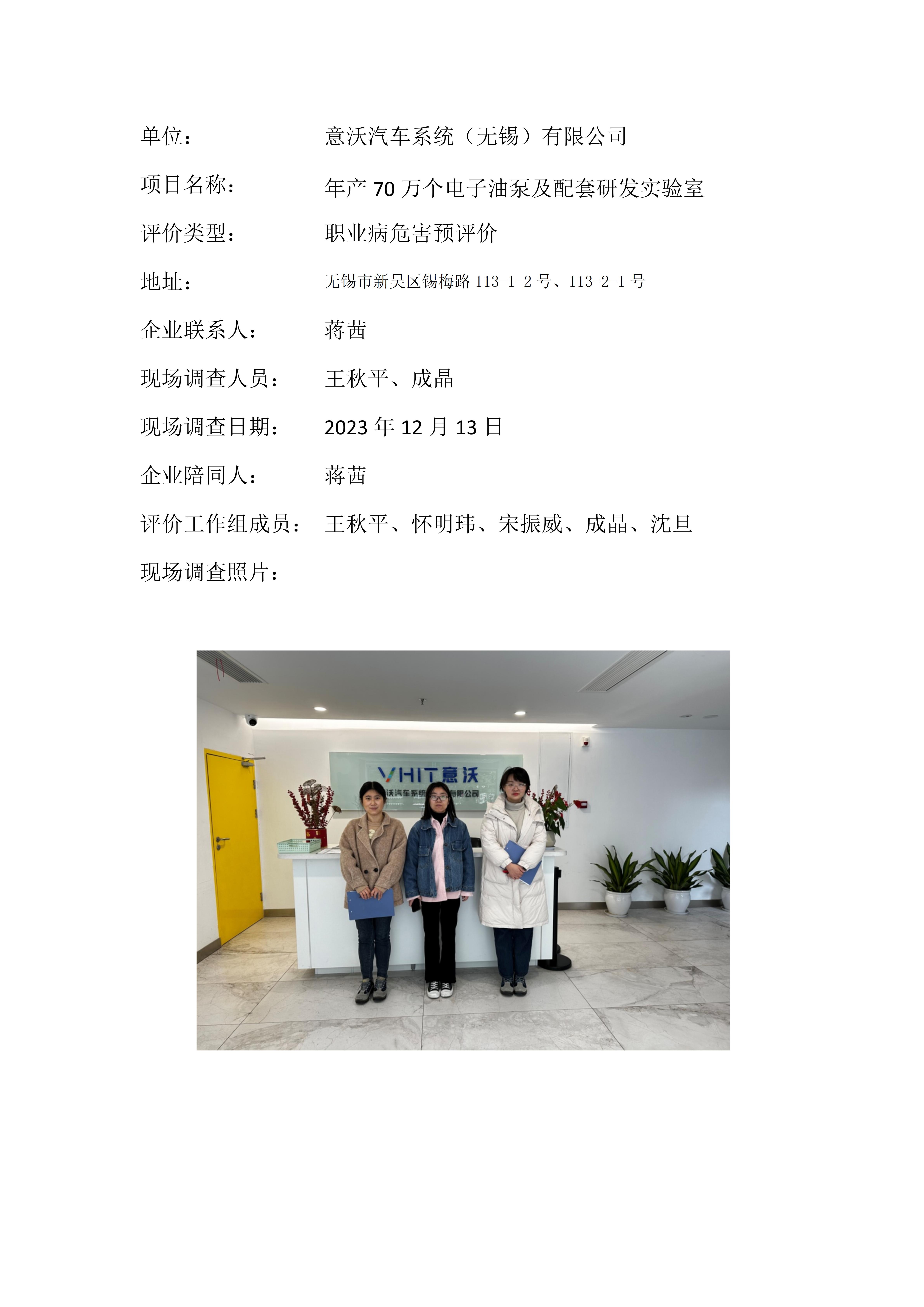 【职业病危害预评价报告】意沃汽车系统(无锡)有限公司