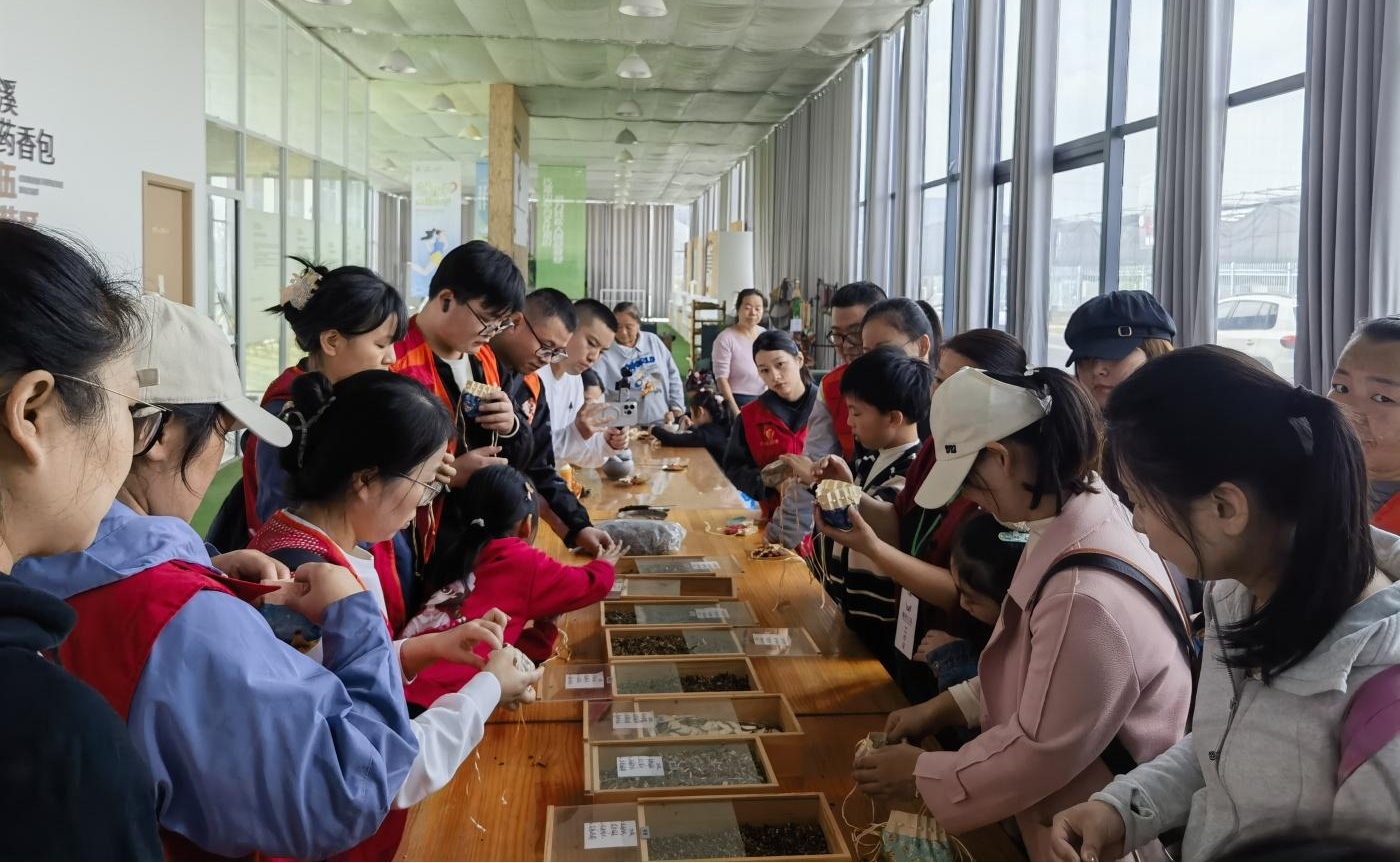 在亲子互动环节中,在中药师的指导下,家长、孩子和志愿者一起制作香囊,按驱蚊、安神、助眠的配方,自主选择药材组合,完成填充后系上祝福卡片,成品带回家留作纪念。孩子们在制作互动中收获了快乐,激发了探索兴趣。整个过程中,孩子们展现了高昂的参与热情、脸上洋溢着灿烂的笑容,不仅有效提升了感知能力和语言表达能力,也在亲子协作中增进了情感联结?/p>