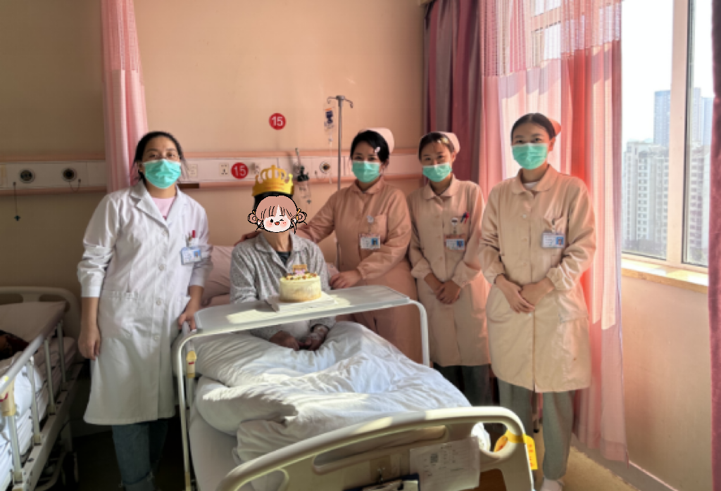 岁岁重阳,今又重阳,10月23号是中国传统节日重阳节,这一天也是安宁疗护病区C阿婆80岁生日,病区主任带领全科医护人员来到老人床前,给C阿婆送去了生日蛋糕,伴随着悦耳的生日快乐歌,病房里其乐融融,场面十分温馨。一句句祝福的话语,一声声贴心的问候萦绕整个病房,医护人员还亲自为阿婆戴上生日小皇冠,陪她过了一个难忘的生日。