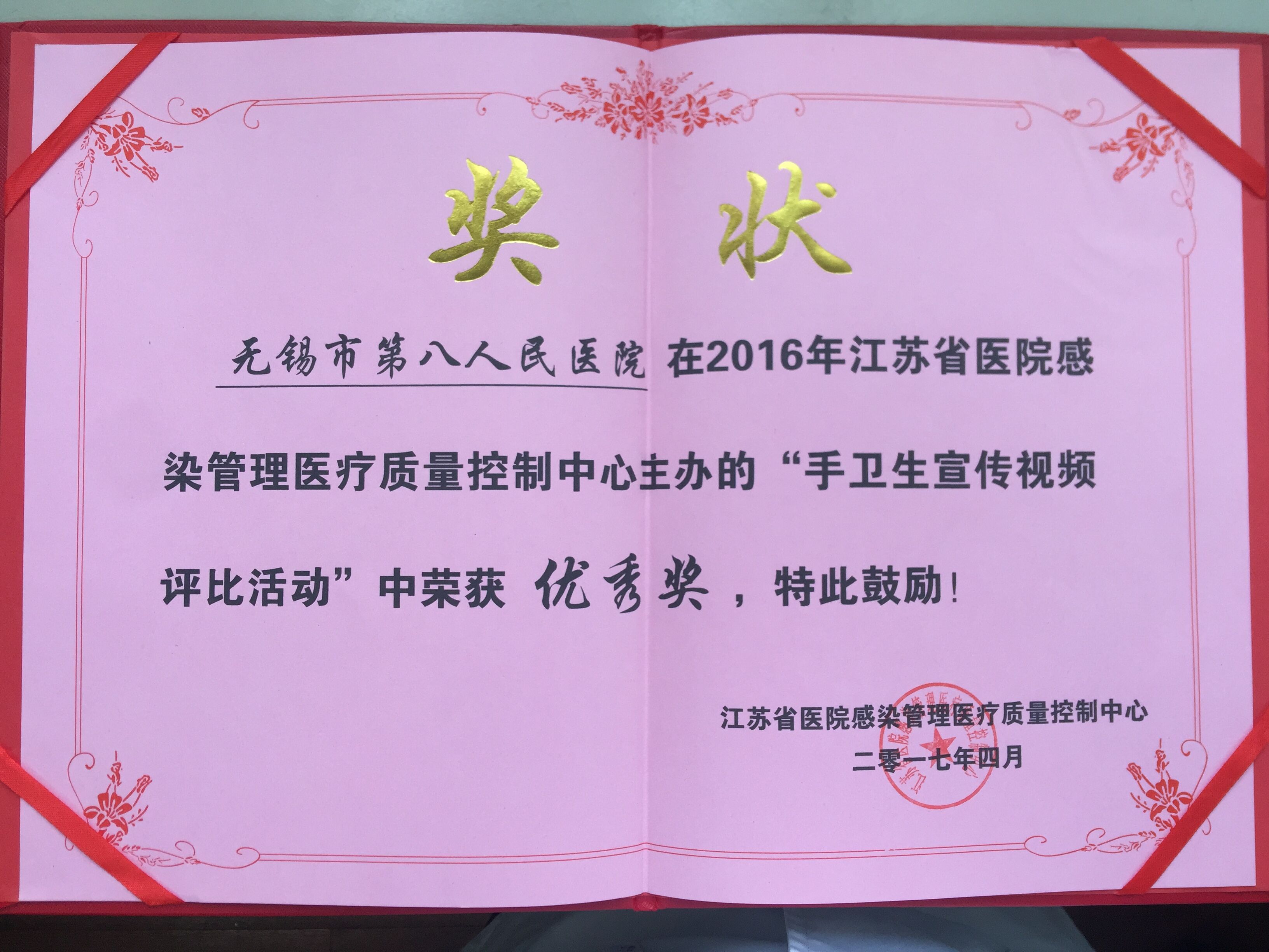 江苏省“手卫生宣传视频评比活动”优秀奖