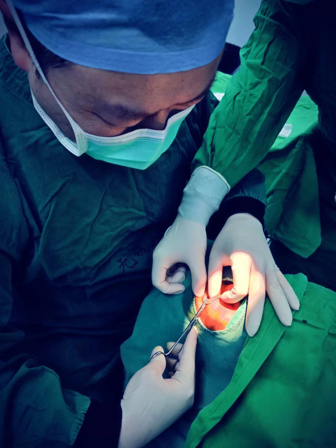 在为J大爷完成了一系列的术前准备工作后,在家人们的陪伴与祝福下, J大爷被推进了手术室。麻醉科主任田皇华带领团队做好风险评估,严格控制麻醉药品的用量及浓度,并在术中密切观察病情变化,监测各项生理指标,确保老人在手术中生命体征平稳。