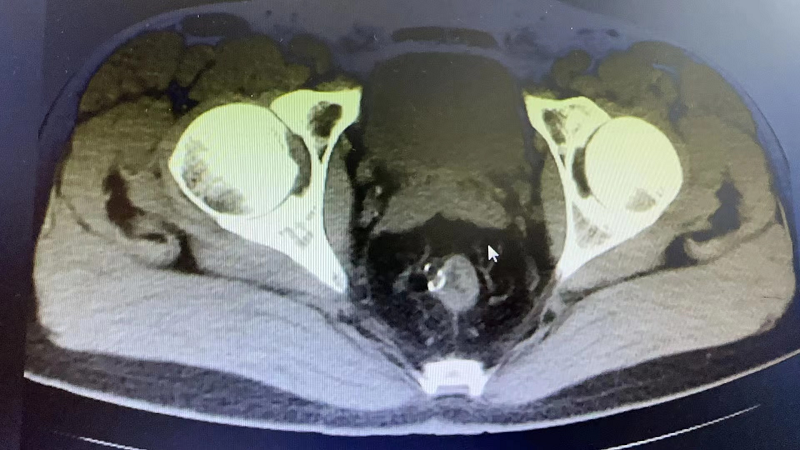 后来,在朋友的介绍下,X先生来到了色视频 肛肠科就诊。肛肠科李泽利主任接诊后通过检查,在肠子里发现了假牙,假牙位于直肠上端。