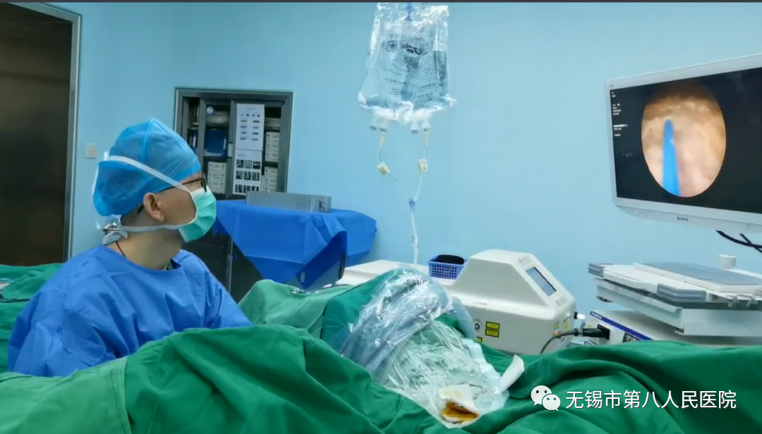 手术由泌尿外科高茂主任亲自操刀,在麻醉科、手术室的倾力配合下,一小时就为J大爷完成尿道内镜下膀胱结石钬激光碎石术,成功解决了约3.0*2.0cm的大结石。